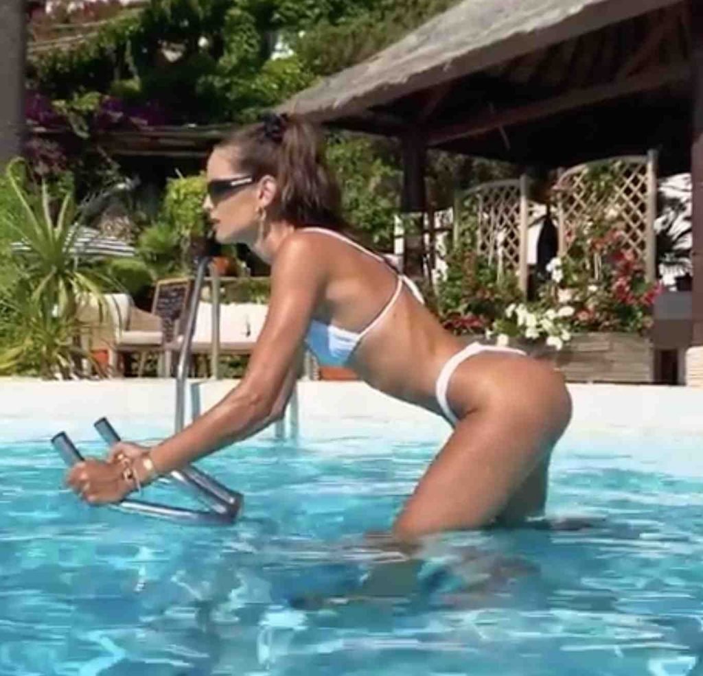 Модель Изабель Гуларт демонстрирует свою сексуальную фигуру в белом бикини, тренируясь на велотренажёре в бассейне, 27.07.2019.