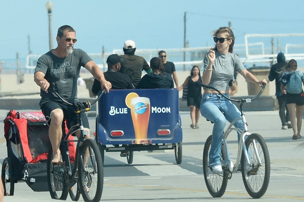 Джош Бролин и Кэтрин Бойд катаются на велосипедах у пляжа в Санта-Монике, Калифорния, 09.07.2019.