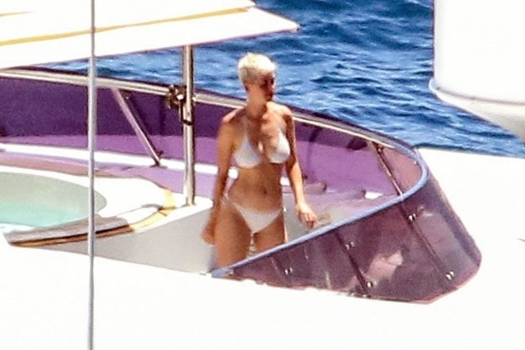Американская певица Кэти Перри трогает свою киску и демонстрирует большую попу в бикини во время отпуска в Италии, 13.07.2017.
