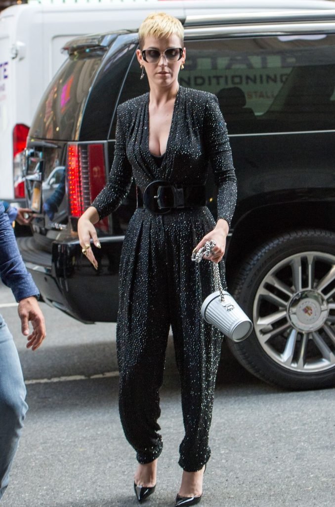 Пышногрудая Кэти Перри в черном комбинезоне в Нью-Йорке, 19.05.2017. Кэти Перри — певица, автор песен и актриса поп-музыки (Сериал “Воспитывая надежду”, 2012) из Санта-Барбары, Калифорния, США. Возраст – 32.