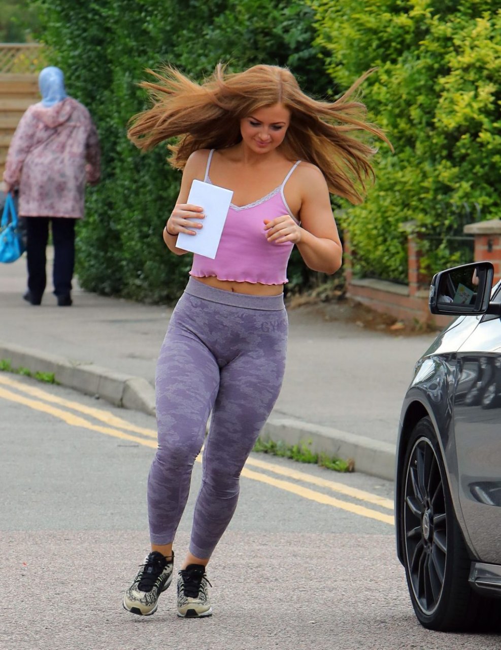 Мэйзи вышла из машины, чтобы поблагодарить их, а затем села обратно в машину. Очевидно, что она была без бюстгальтера, так как пирсинг на ее сосках был виден сквозь топ.