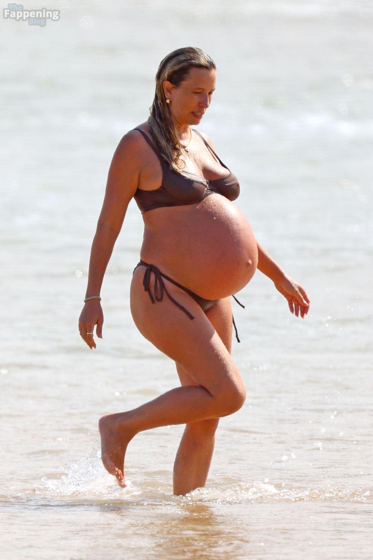 Готова родить! Сильно беременная Рене Барг выходит на пляж в коричневом бикини на пляже Авалон в Сиднее.