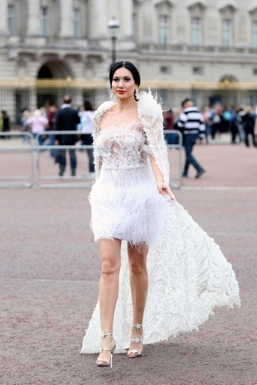 Ливанская телеведущая, радиоведущая и модель Reine Sabty была замечена в прозрачном белом платье во время фотосессии в Лондоне, 06/04/2019.