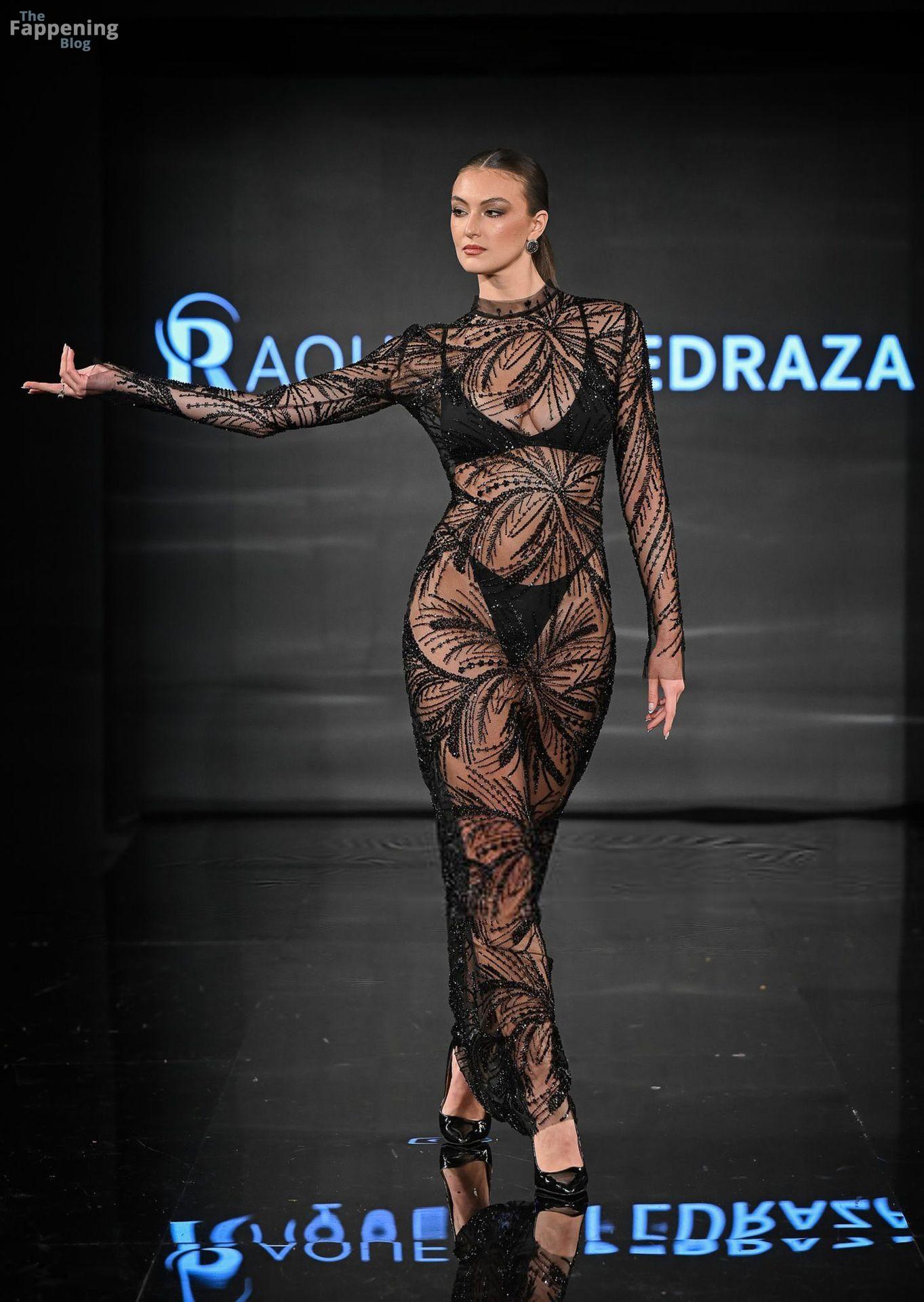 Рэйчел Пиццолато запечатлена на NYFW в своих прозрачных платьях, образах с нижним бельём и полностью привлекающем внимание золотом платье без бюстгальтера, которое демонстрировало её сексуальную грудь на подиуме.