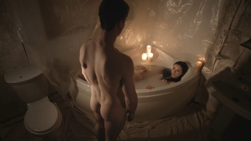 Смотрите обнажённое видео Айсте Грамантаите из фильма “Припадок” (2016). Айсте сидит голая в ванной, полной мыльной воды, с грудью, выступающей над поверхностью, смотрит на парня и заставляет его снять рубашку и штаны, прежде чем он протягивает руку к ней и замечает порез на запястье.