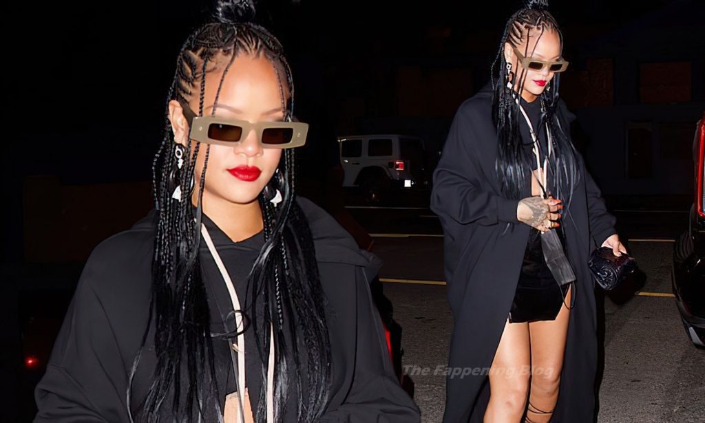 Барбадосская звезда Fappening привлекала внимание, выставляя напоказ свои длинные ноги в короткой мини-юбке с откровенным топом и длинным черным тренчем.