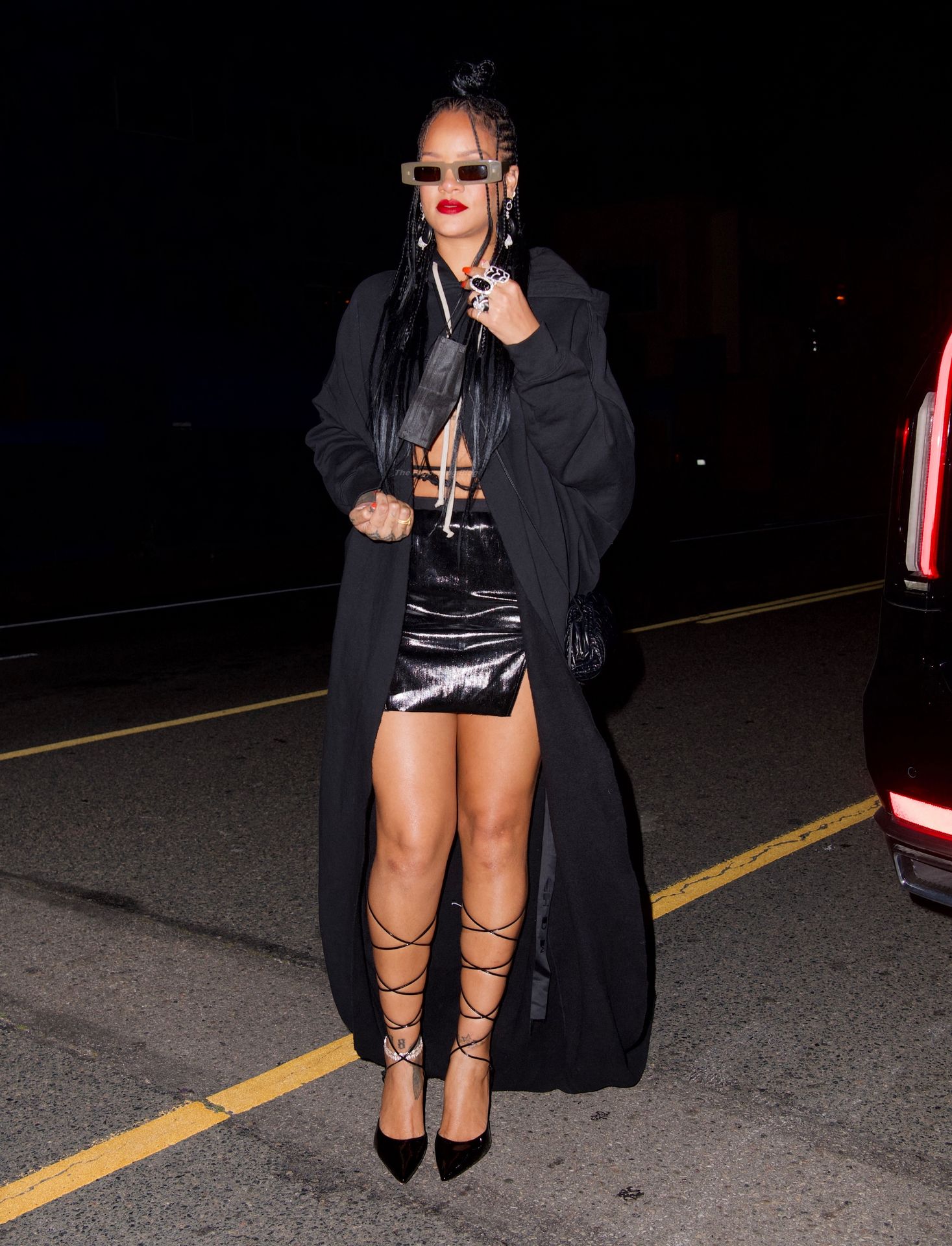 Звезда The Fappening Рианна демонстрирует свои ноги в крошечной черной юбке, направляясь на ужин в Giorgio Baldi, 29.03.2021.