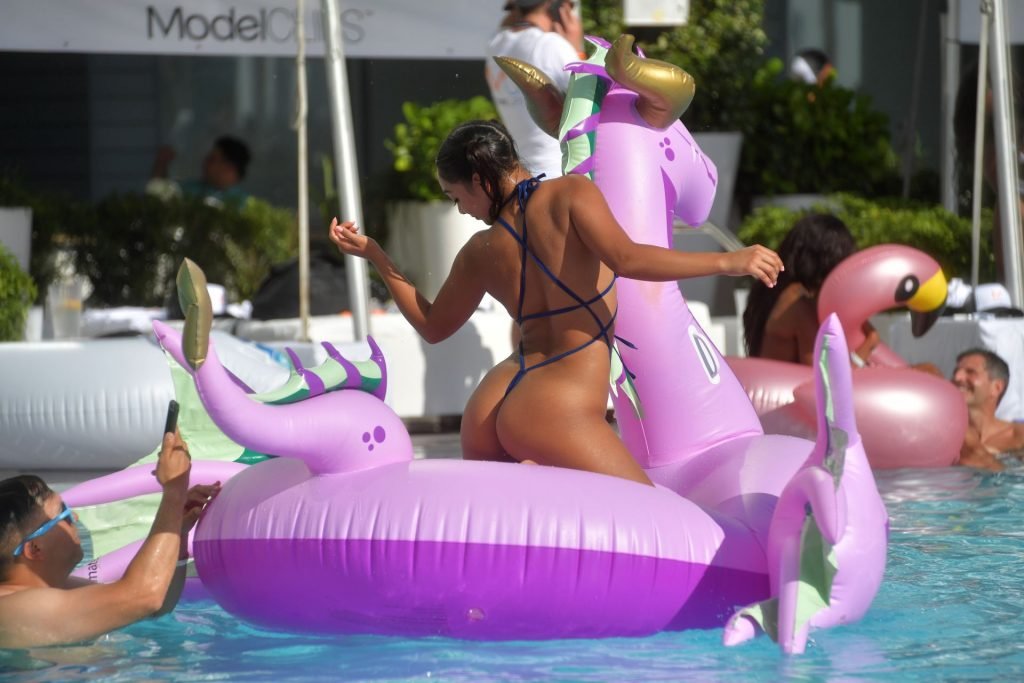 Американская гламурная модель Гиллиан Барнс была замечена топлес на вечеринке у бассейна XBIZ Miami Topless Pool Party в Майами-Бич, Флорида, 29.05.2019.