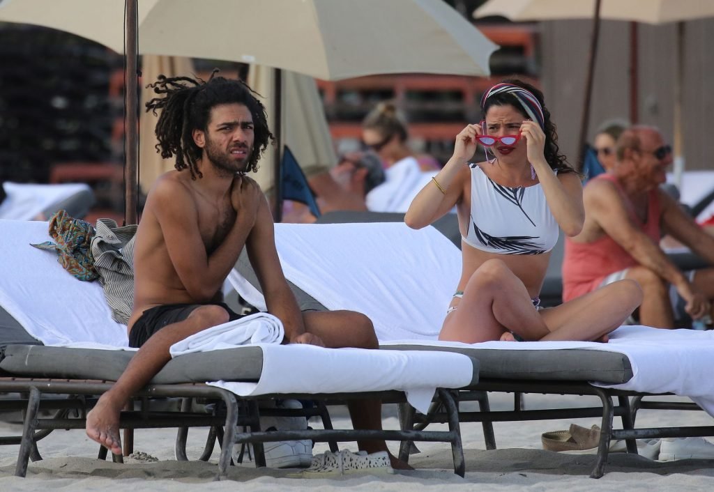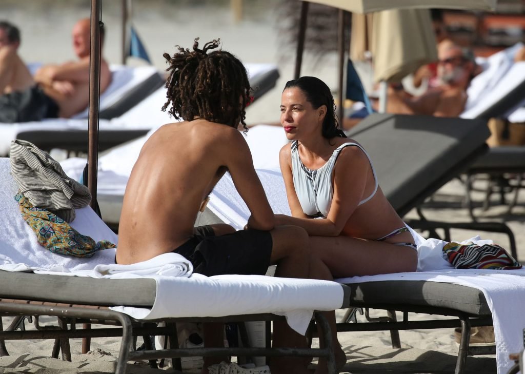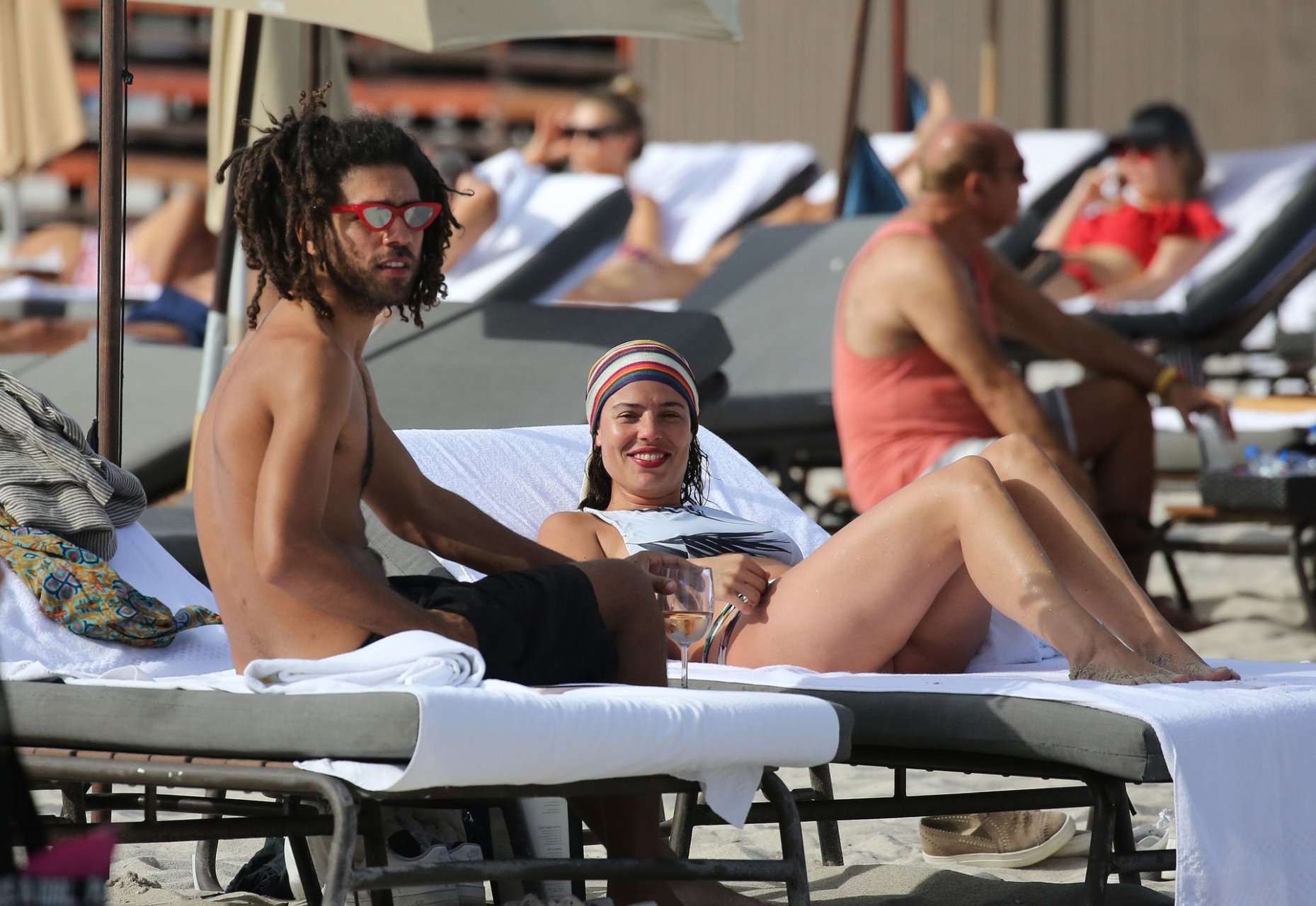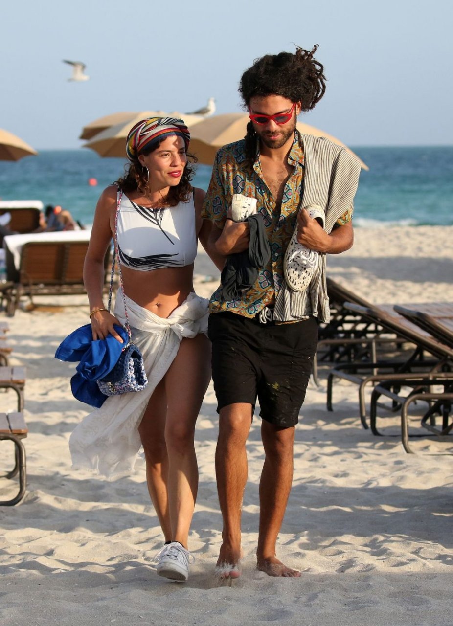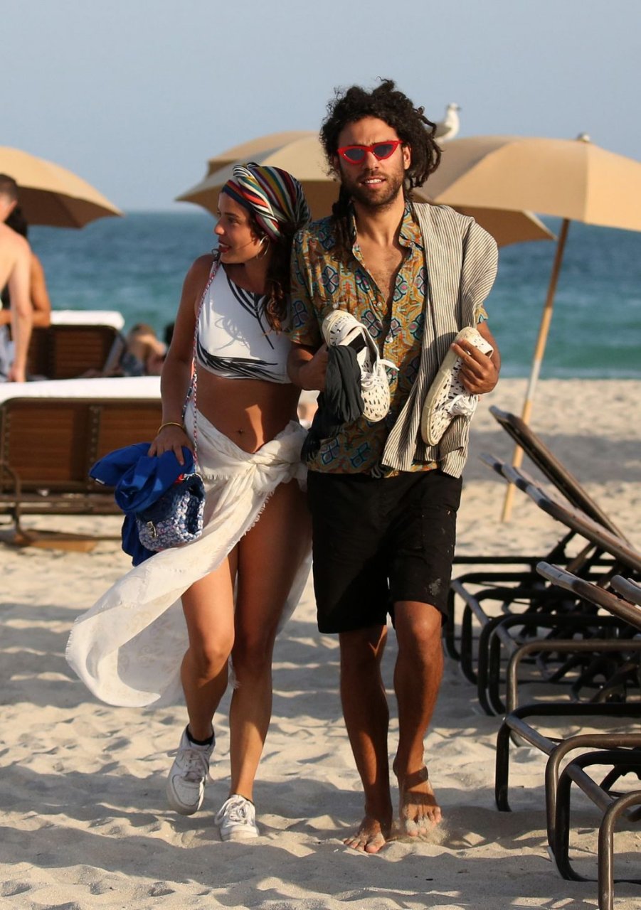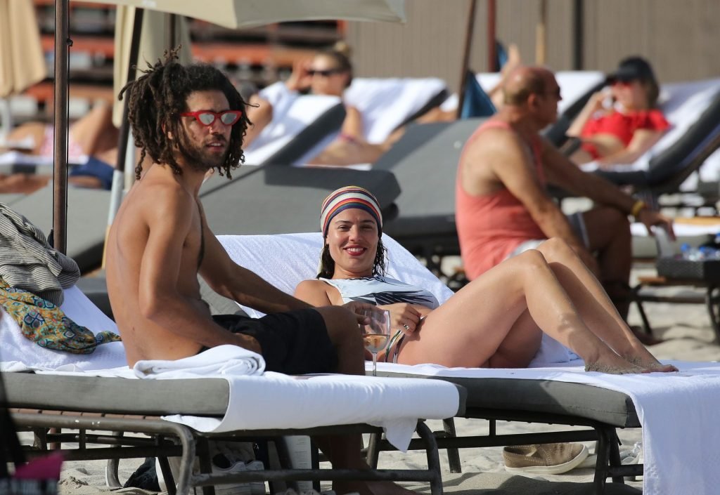 Сын Бориса Беккера Ноа демонстрирует много публичных проявлений чувств с подругой в бикини, внештатным продюсером Тайной Морено де Оливейра Лагоейро на пляже в Майами, 01/02/2019.