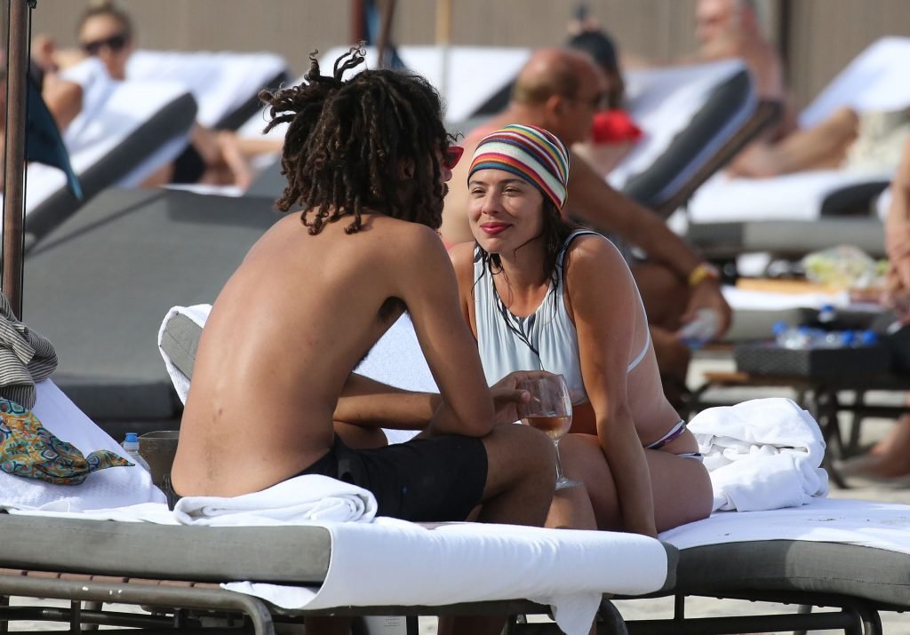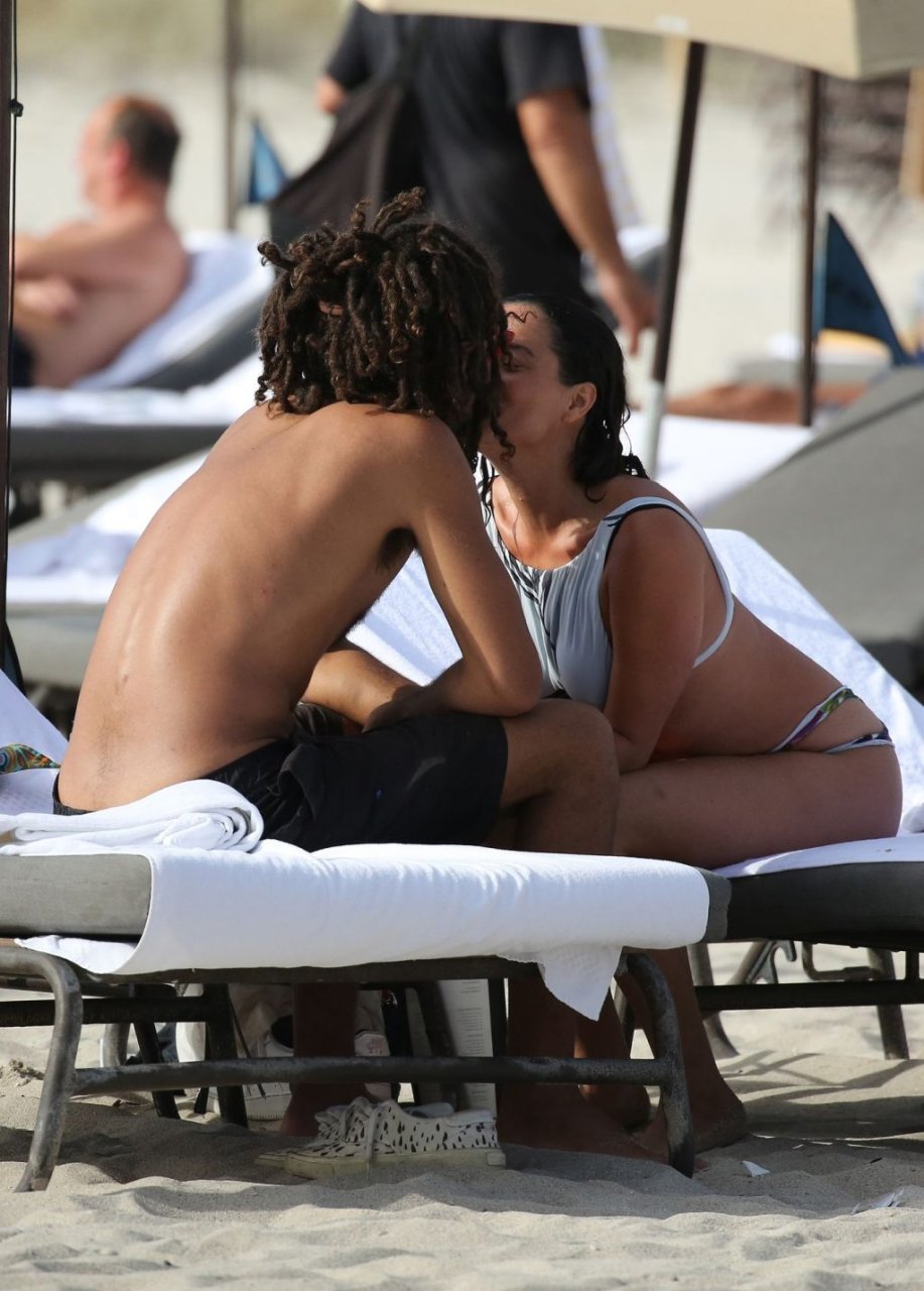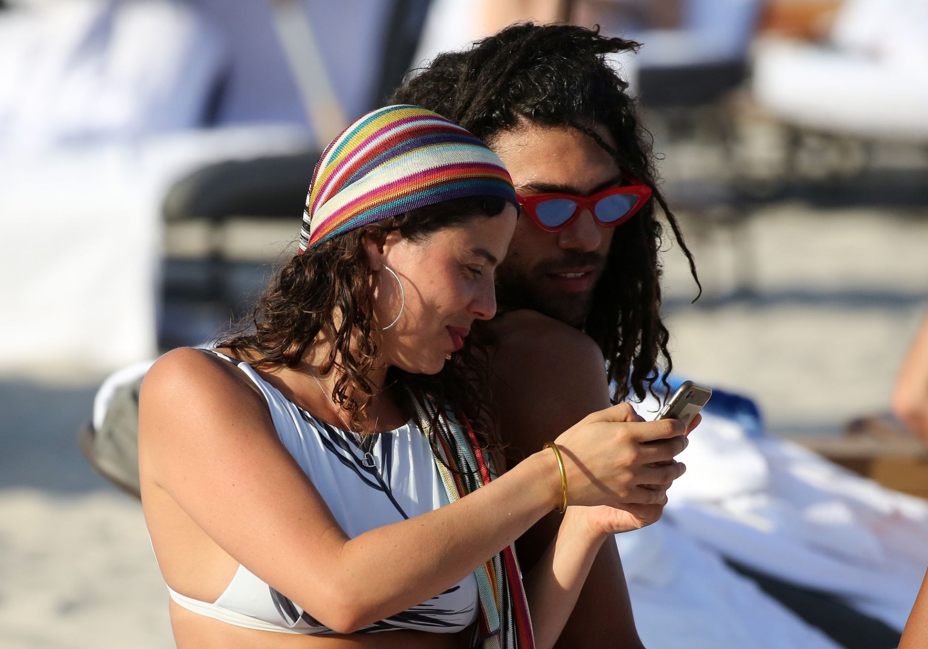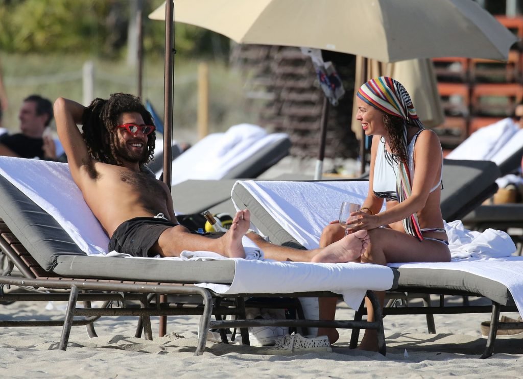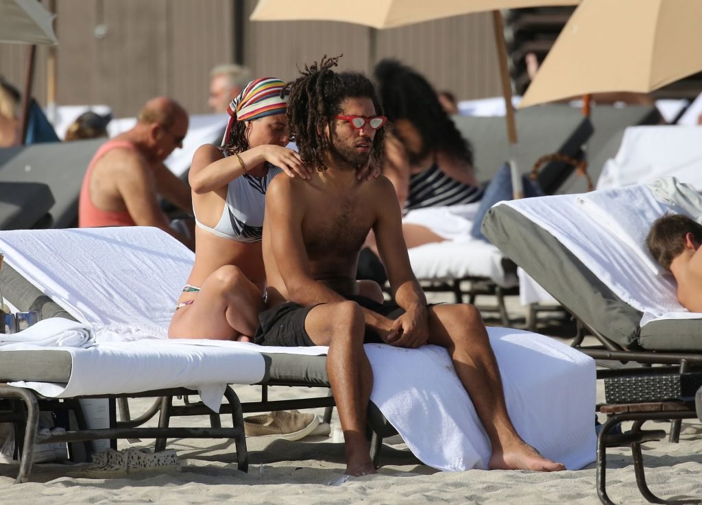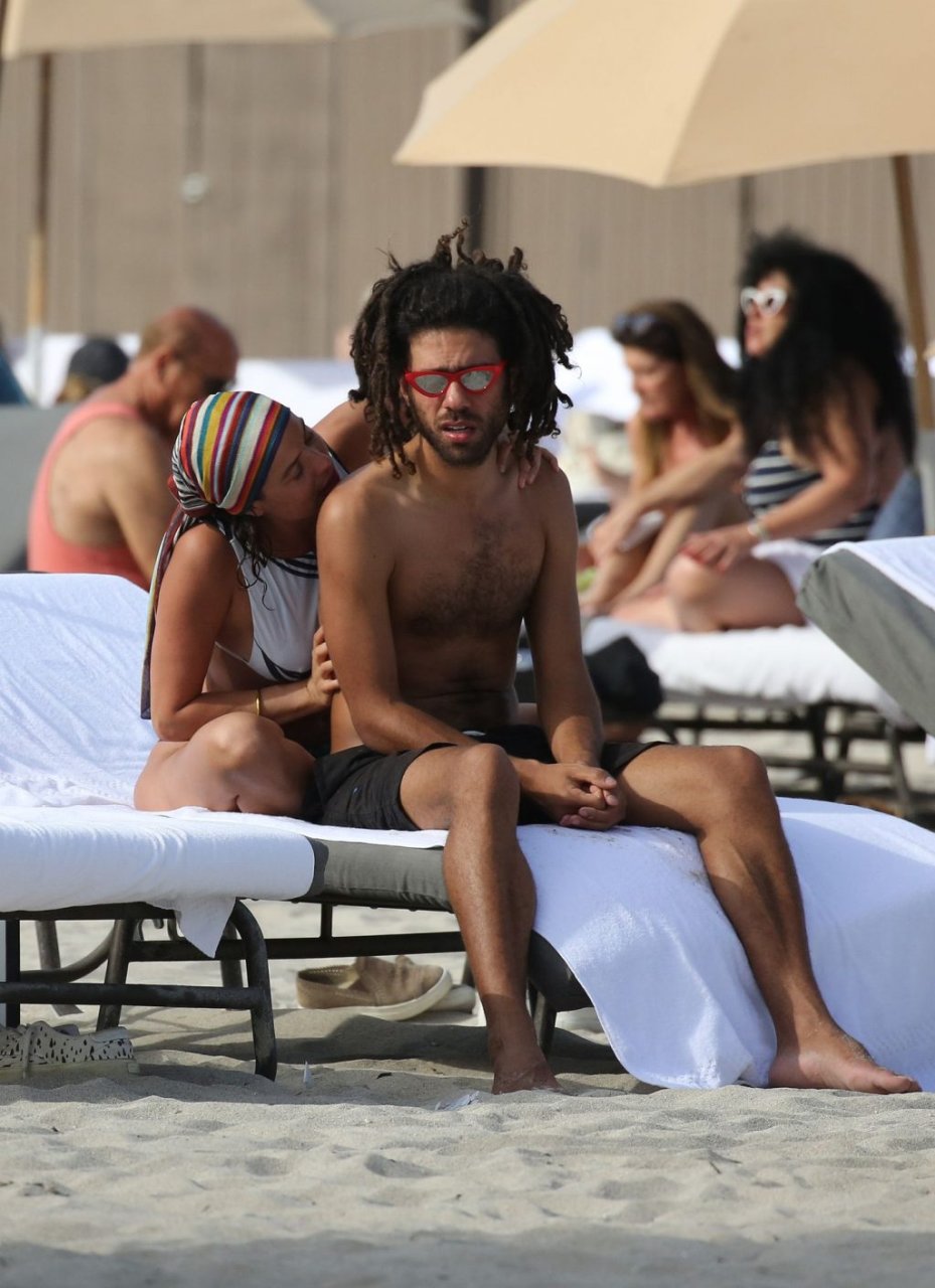 Сын Бориса Беккера Ноа демонстрирует много публичных проявлений чувств с подругой в бикини, внештатным продюсером Тайной Морено де Оливейра Лагоейро на пляже в Майами, 01/02/2019.