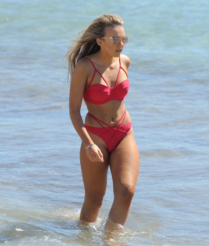 Tallia Storm выглядит потрясающе в красном двухсекционном бикини во время отпуска в Кабо-Верде, Испания, 21.03.2018. Наталья (Tallia) Storm Hartmann — шотландская певица, автор песен и звезда шоу E4 “Celebs Go Dating 2018”. Дата рождения: 30 октября 1998 года.