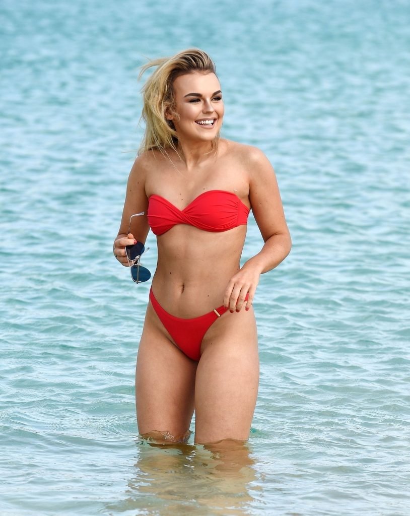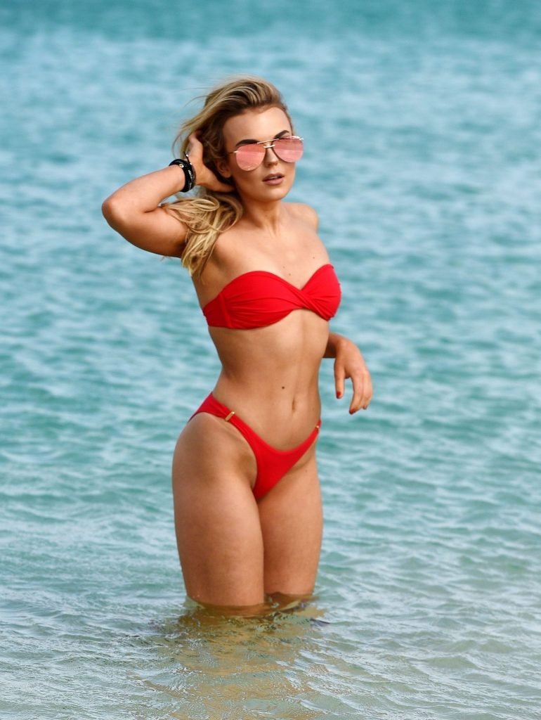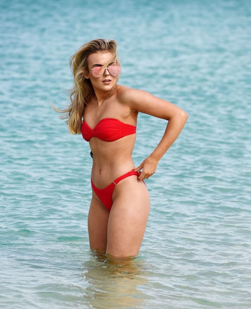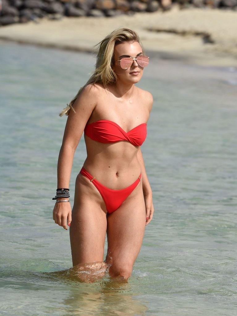 Шотландская певица Tallia Storm, 19 лет, демонстрирует своё сексуальное тело в красном горячем бикини, наслаждаясь выходным днем во время съемок шоу Celebs Go Dating в Кабо-Верде, 31.01.2018.