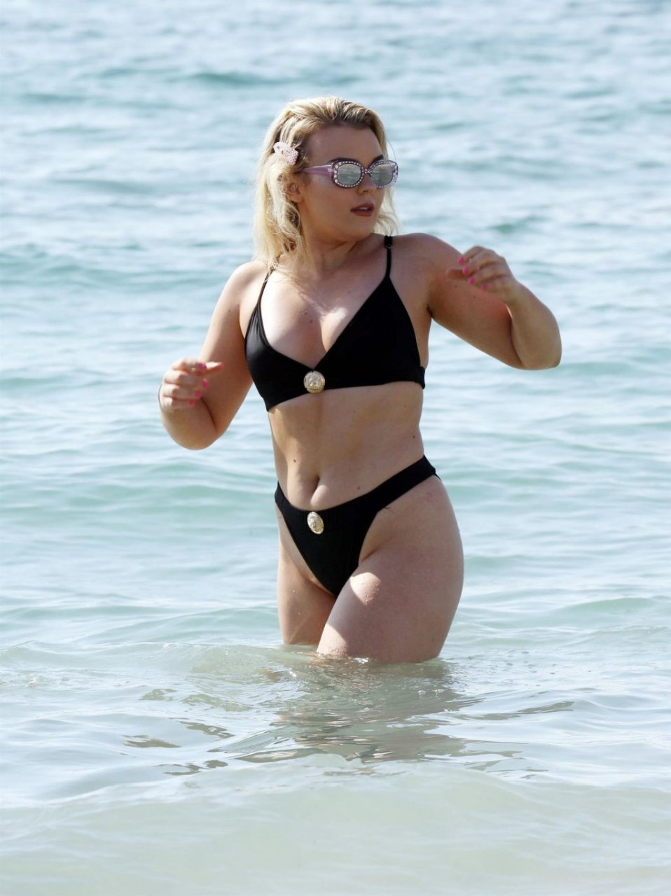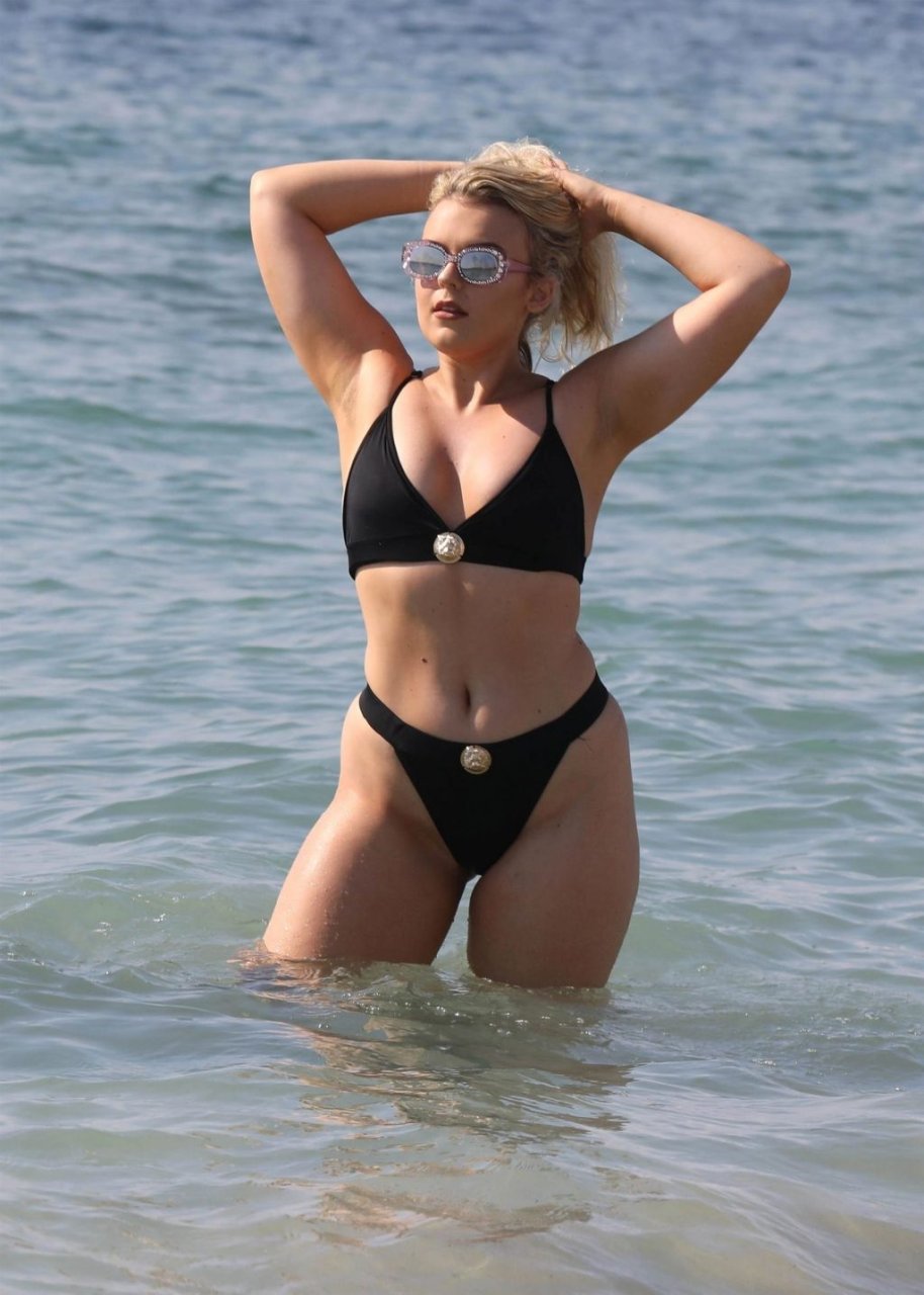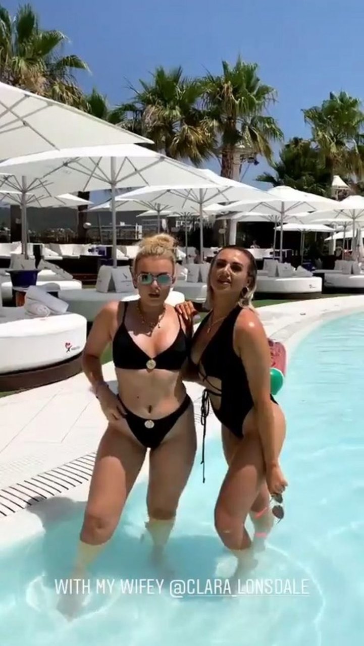 Шотландская певица Tallia Storm демонстрирует сексуальный образ, запечатленная на отдыхе с Кларой Лонсдейл в своем крошечном черном бикини на испанском острове Ибица, 07/03/2019.