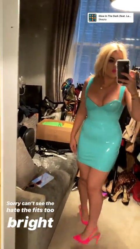 Tallia Storm посещает вечеринку CIROC x Moschino в честь Pride In London в MNKY HSE, 07/04/2019. 20-летняя певица демонстрирует декольте в бирюзовом латексном платье.