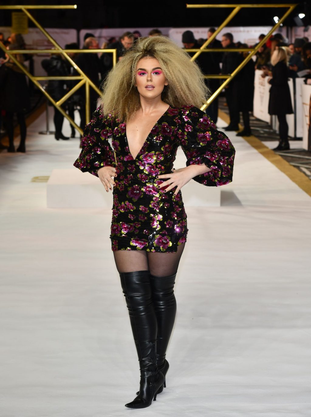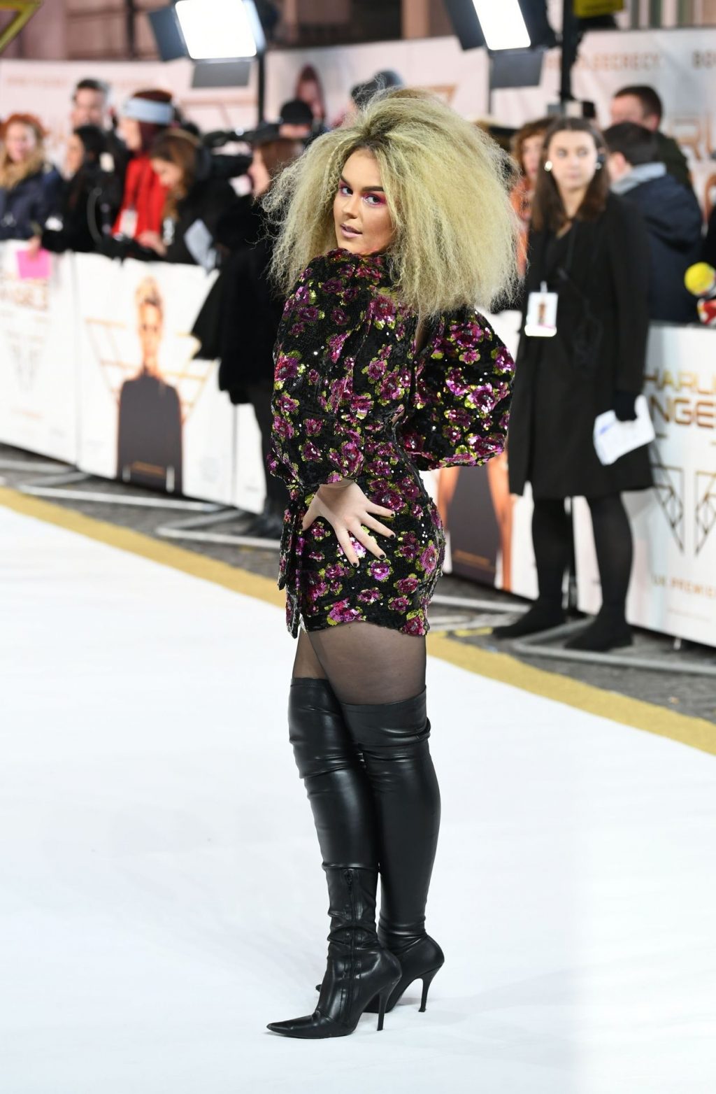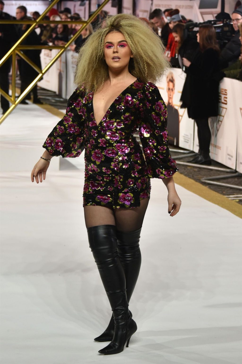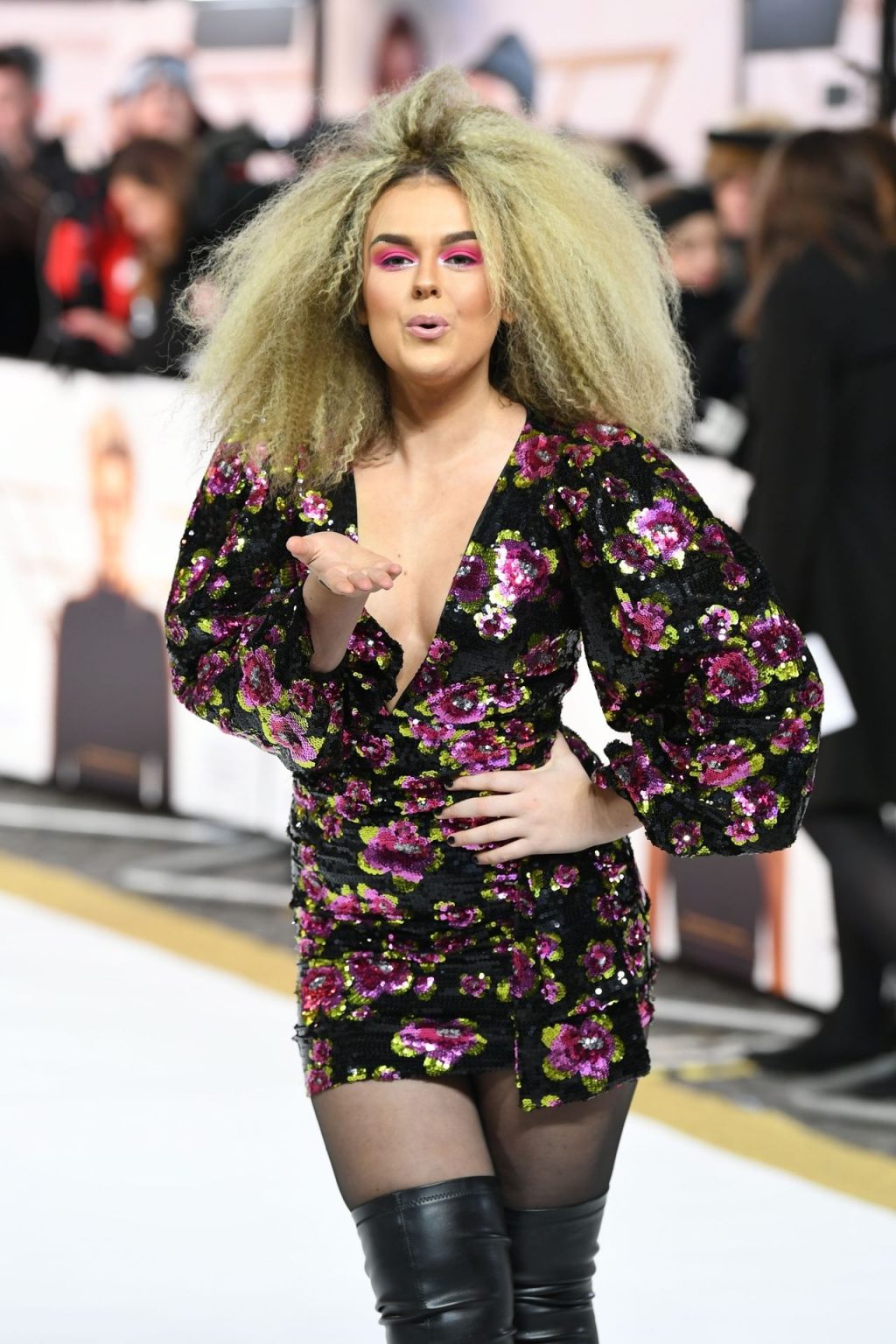 Певица без бюста Tallia Storm посещает премьеру фильма «Ангелы Чарли» в Curzons Mayfair в Лондоне, 20.11.2019. Все внимание гостей было приковано к её причёске!