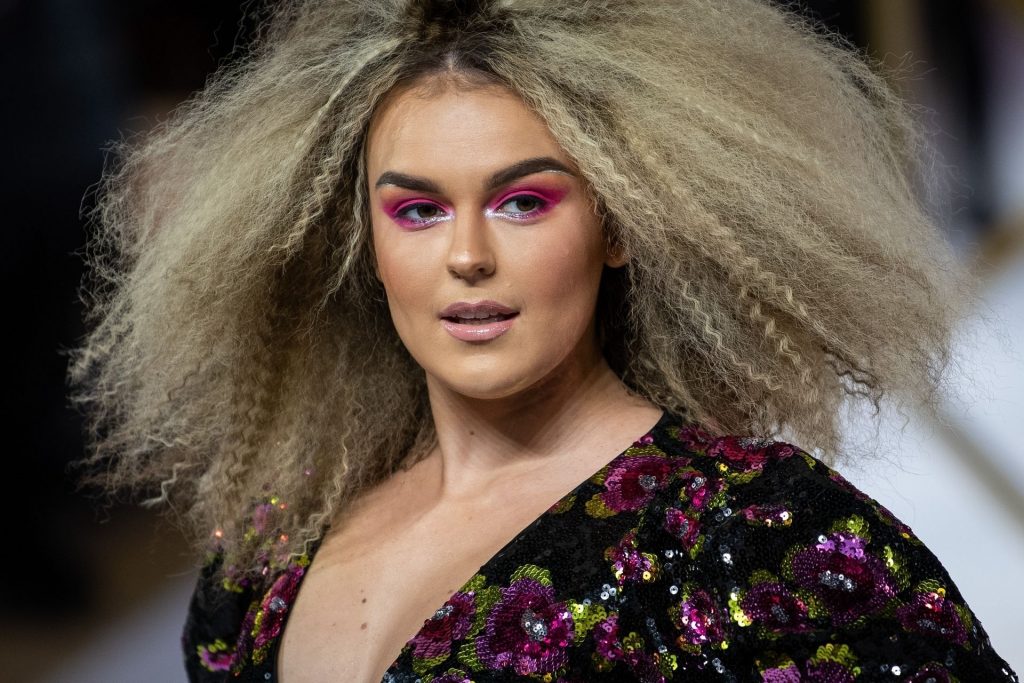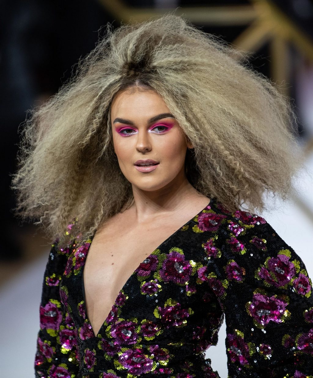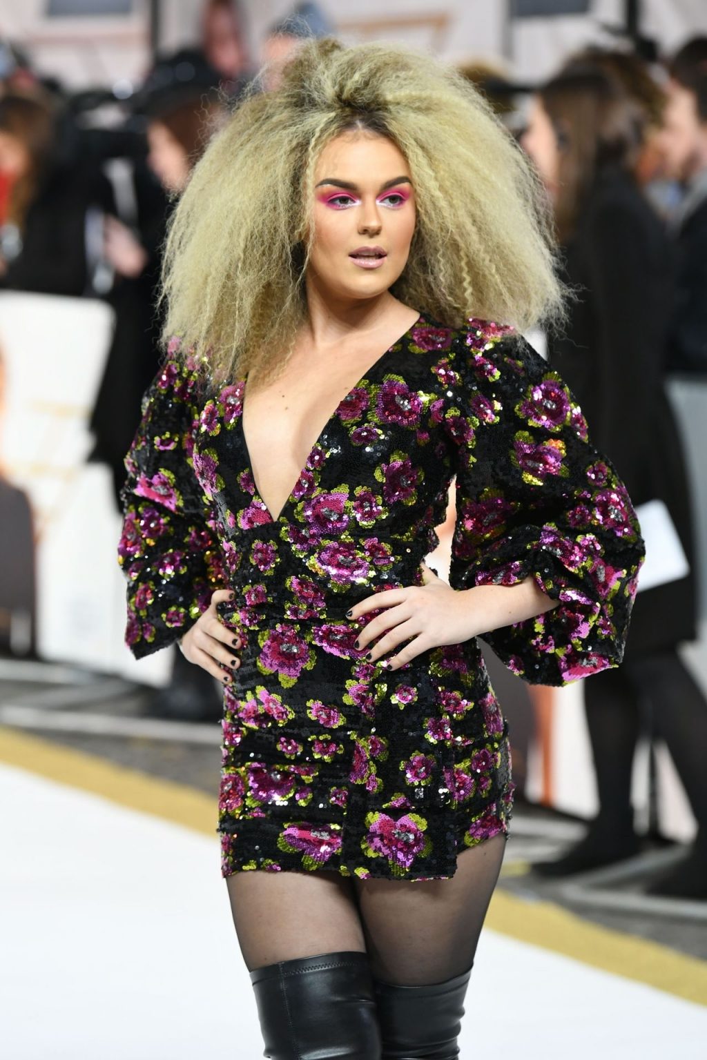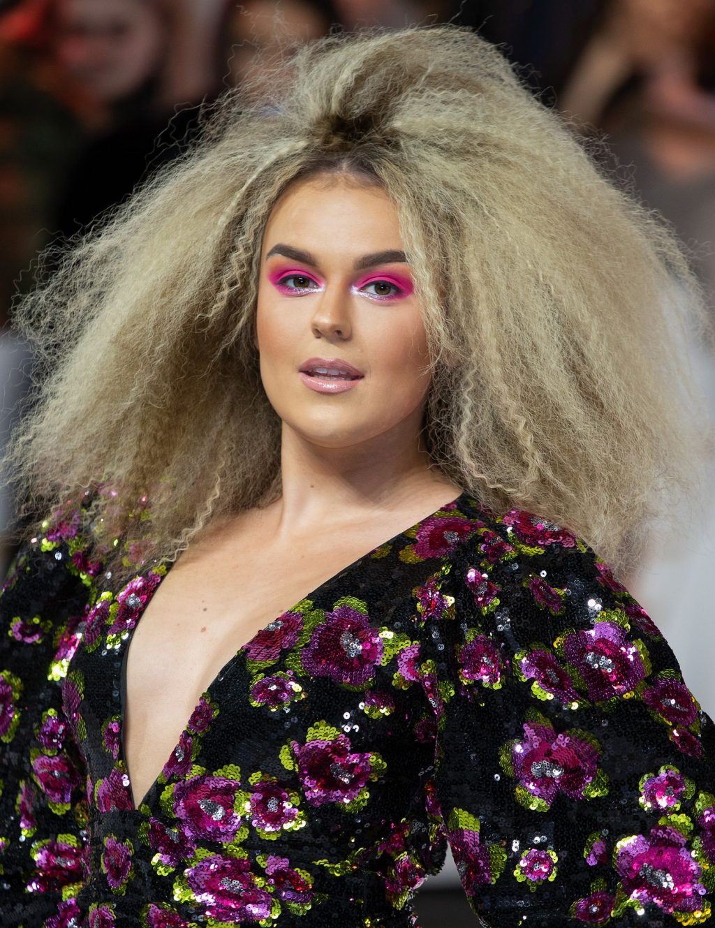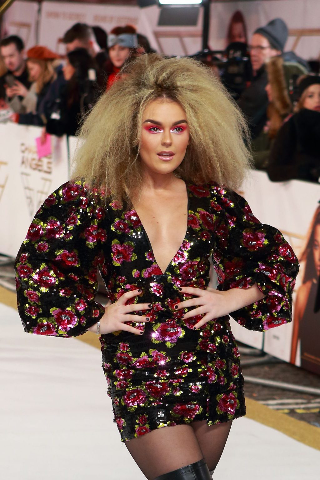 Певица без бюста Tallia Storm посещает премьеру фильма «Ангелы Чарли» в Curzons Mayfair в Лондоне, 20.11.2019. Все внимание гостей было приковано к её причёске!