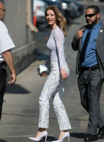 По её платью видно, что грудь обвисшая. Совсем не привлекательно