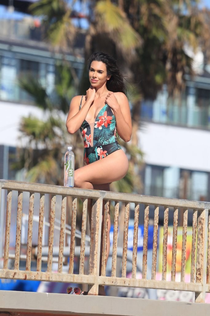 International Playmate и итальянская модель Тания Мари выглядит потрясающе в Versace, когда она снимается для 138 Water в Venice Beach, 15.11.2017.