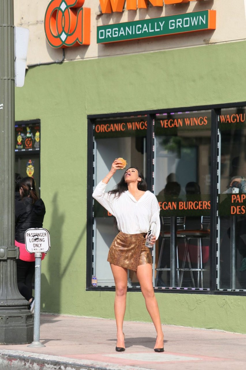 Итальянская модель Тания Мари позирует топлес на Голливудском бульваре, рекламируя Impossible Burger в ресторане OG Wings во время съемок нового сексуального рекламного ролика для 138 Water, 03/05/2019.