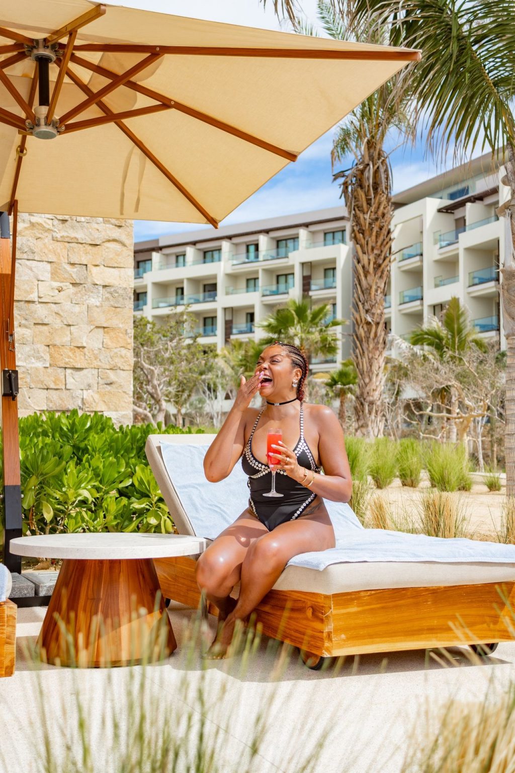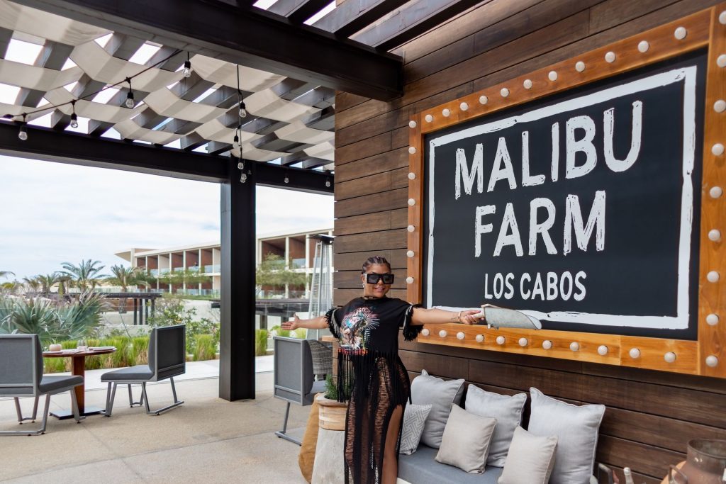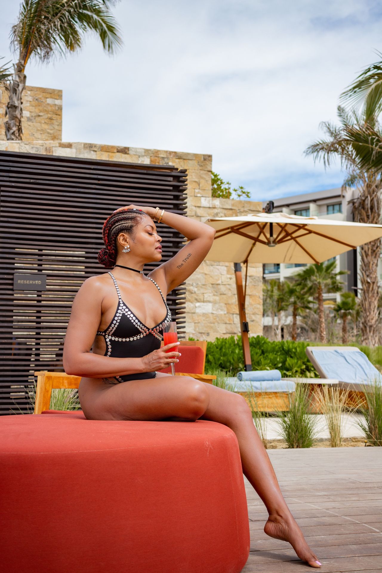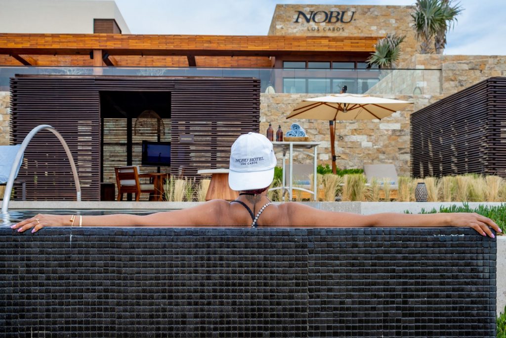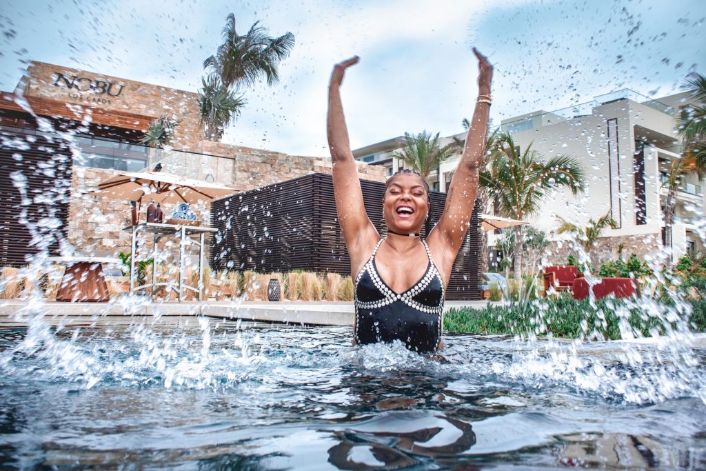 49-летняя актриса надела смелый черный купальник с украшениями и провела приятное время с Келвином, за которого собирается выйти замуж 4 апреля, в отеле Nobu Los Cabos.