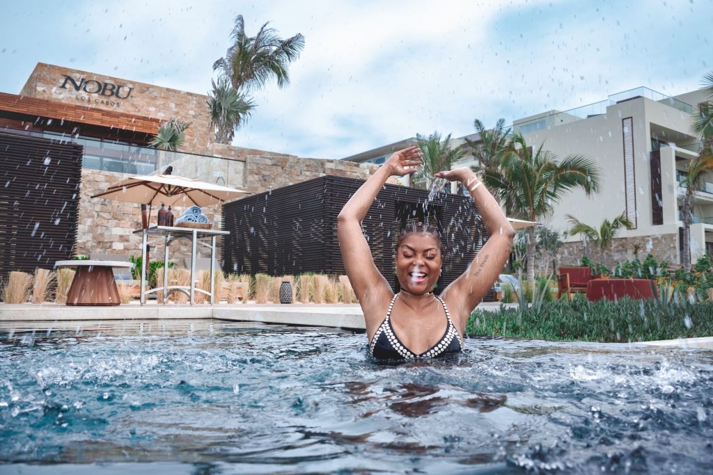Влюбленные сделали перерыв от морозного Чикаго, где она снимается в спин-оффе своего успешного шоу Empire. Обладательница Оскара и бывший игрок НФЛ прибыли в свой частный люкс с видом на океан, где их встретили фирменным коктейлем Nobu и специально приготовленным десертом в честь выходных ко Дню святого Валентина.