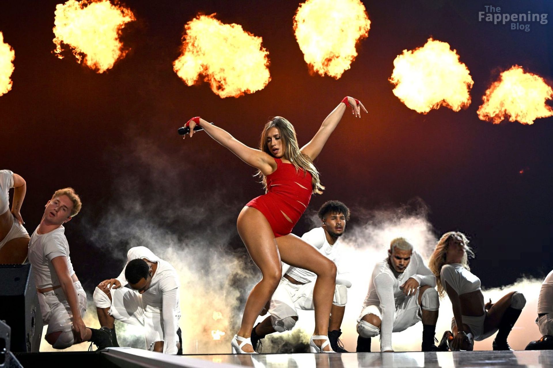 Задница, декольте и бедра канадской певицы, автора песен и танцовщицы Тейт МакРей покорили iHeartRadio Vegas, изгибаясь, делая шпагаты и двигаясь в этом обтягивающем красном боди.