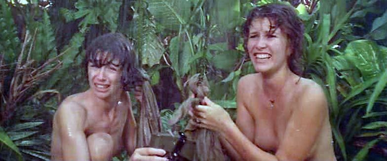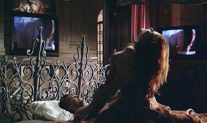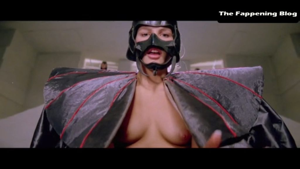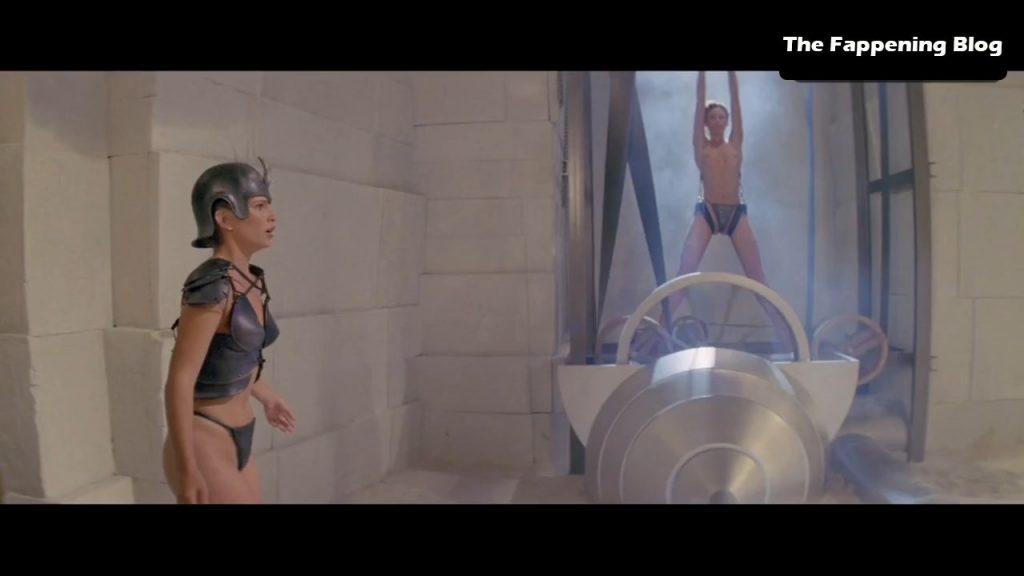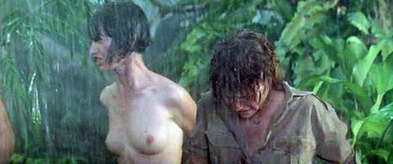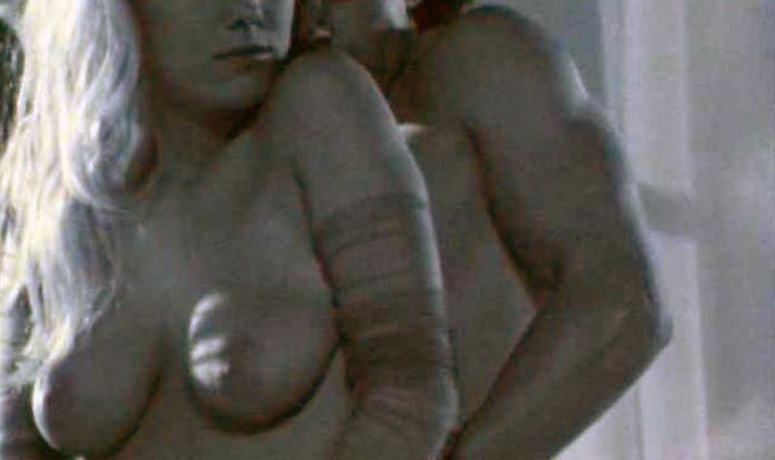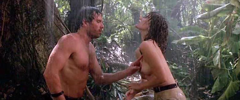 The next scene is from the ‘The Perils of Gwendoline in the Land of the Yik Yak’ movie. Weird name, right? When it starts to rain in the jungle, Tawny Kitaen and Zabou remove their clothes, exposing their breasts as they attempt to gather water and create a fire.