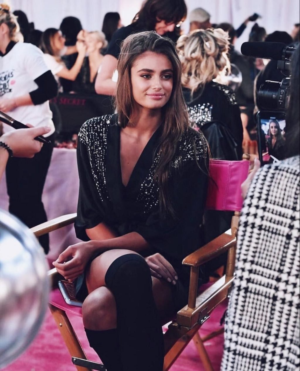 Милая молодая модель Тейлор Хилл (22) идет по подиуму во время шоу Victoria’s Secret Fashion 2018 в Нью-Йорке, 08.11.2018. Она также продемонстрировала свои сексуальные ноги на вечеринке.
