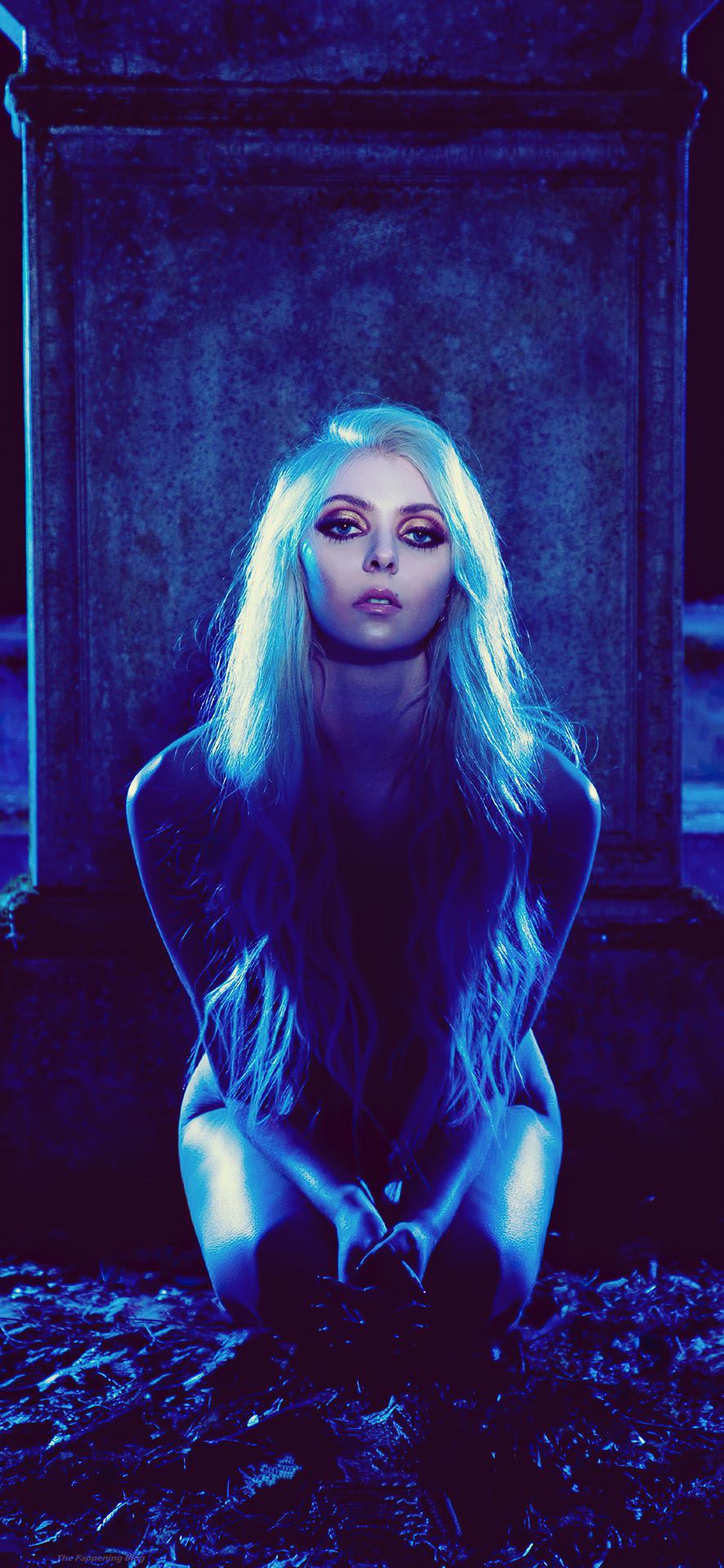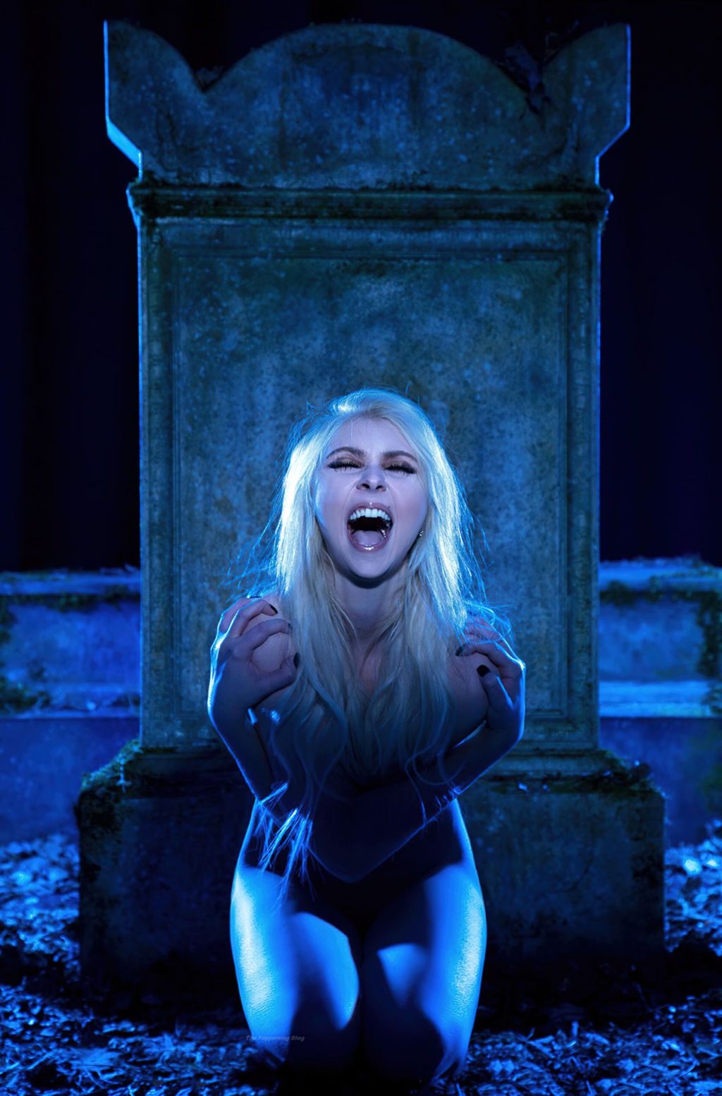 Посмотрите отредактированные обнажённые (закрытые) фотографии Тейлор Момсен для её альбома «Death By Rock And Roll» (2021). Певица позирует на кладбище без одежды.