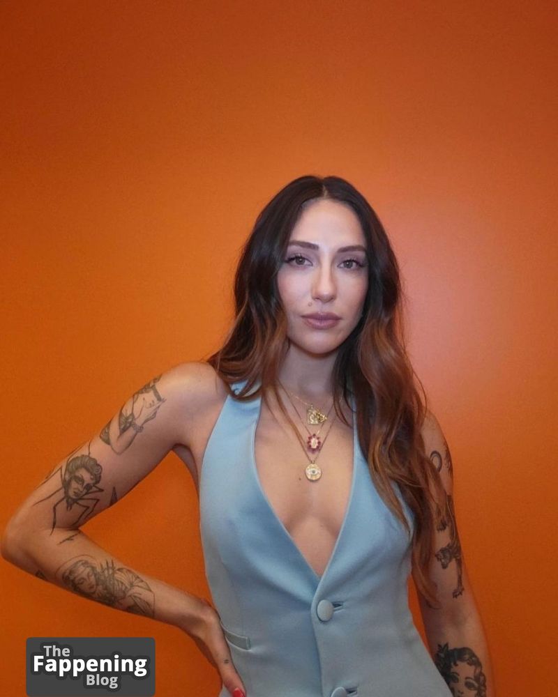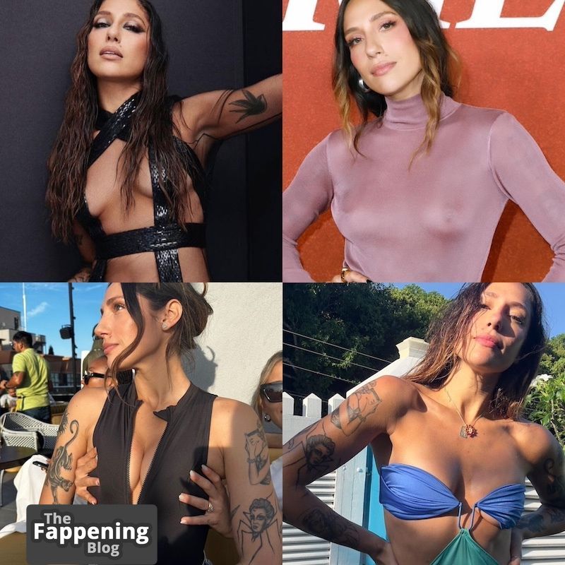 Коллекция фотографий Тефи Пессоа демонстрирует её частично обнажённые снимки, показывающие её топлесс грудь, бюст без лифчика с обильным декольте, обнажённые соски, соблазнительные ягодицы, привлекательные ноги и стройную фигуру.