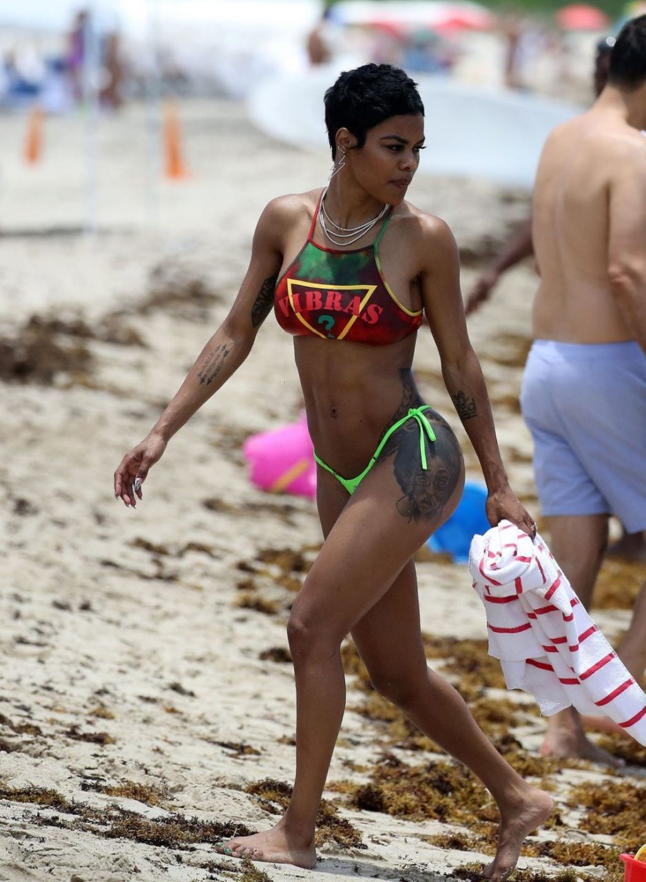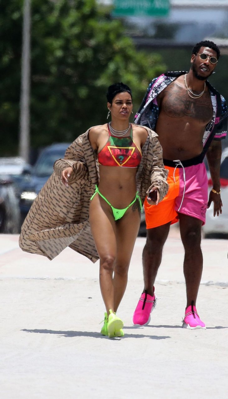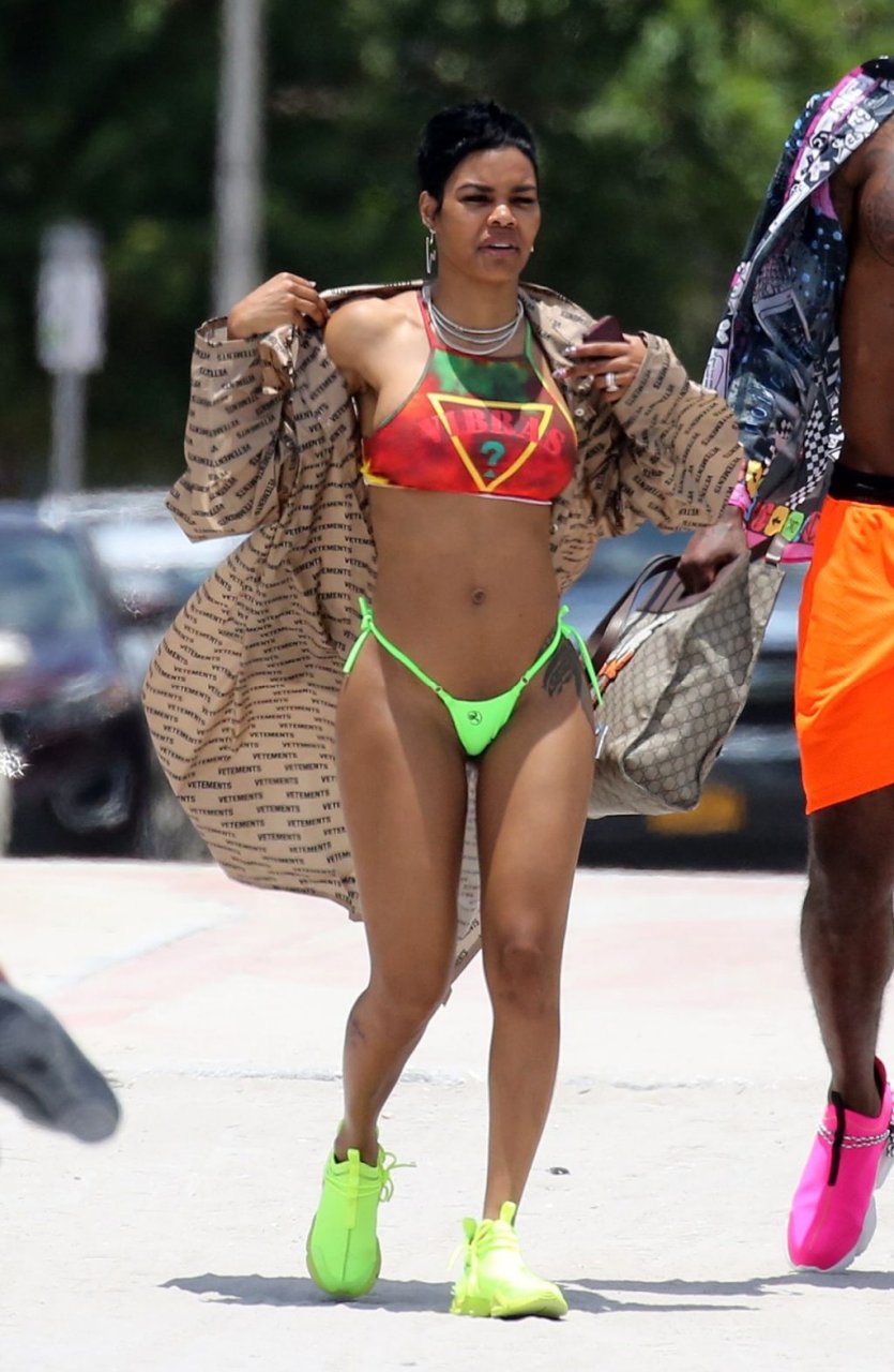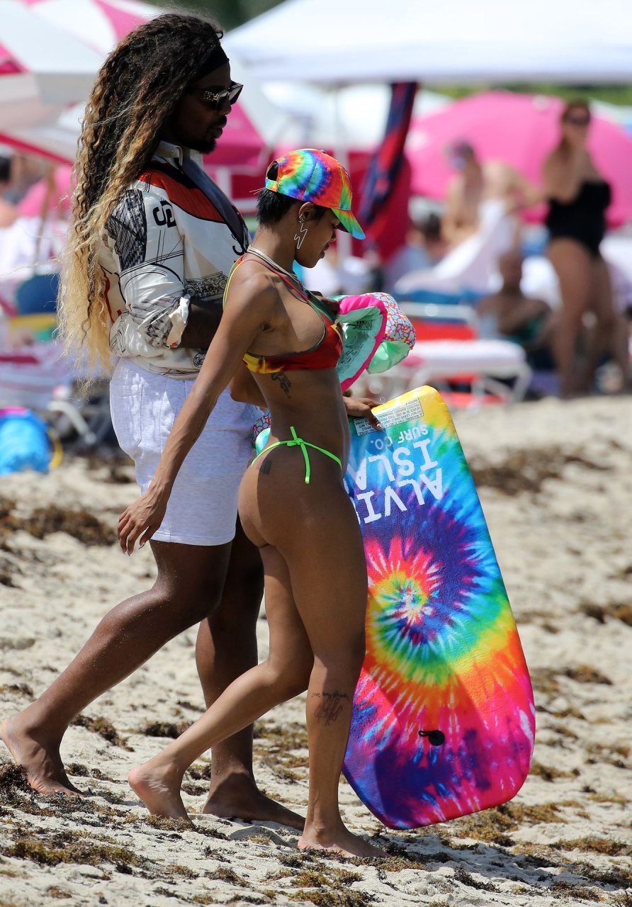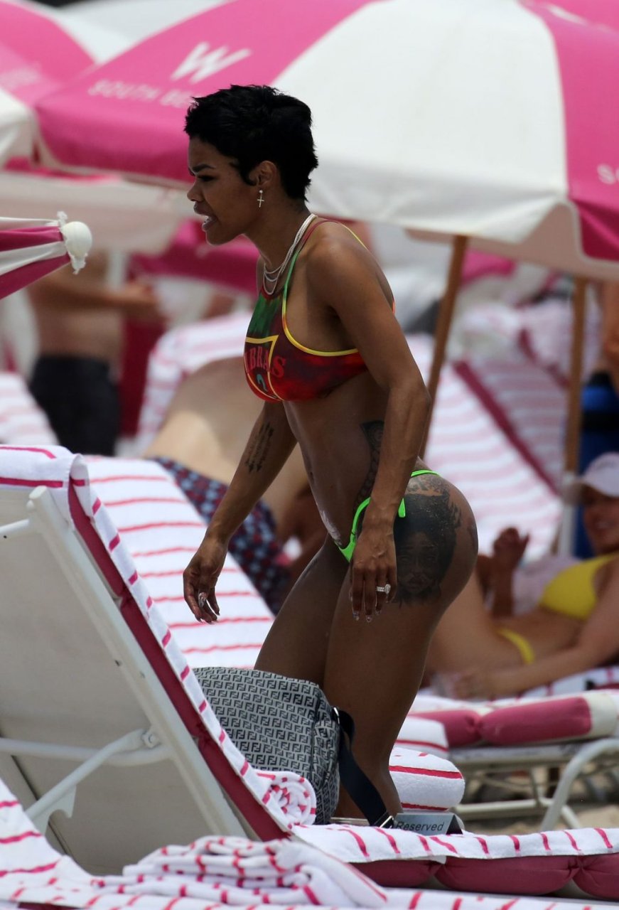 Певица Теяна Тейлор носит крошечное разноцветное бикини, наслаждаясь 4 июля с мужем, игроком НБА Имманом Шамперт и дочерью на Майами-Бич, 04.07.2019.