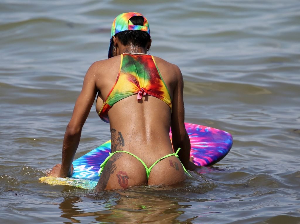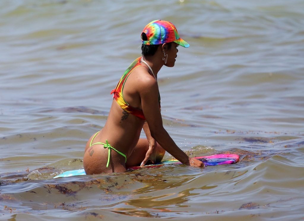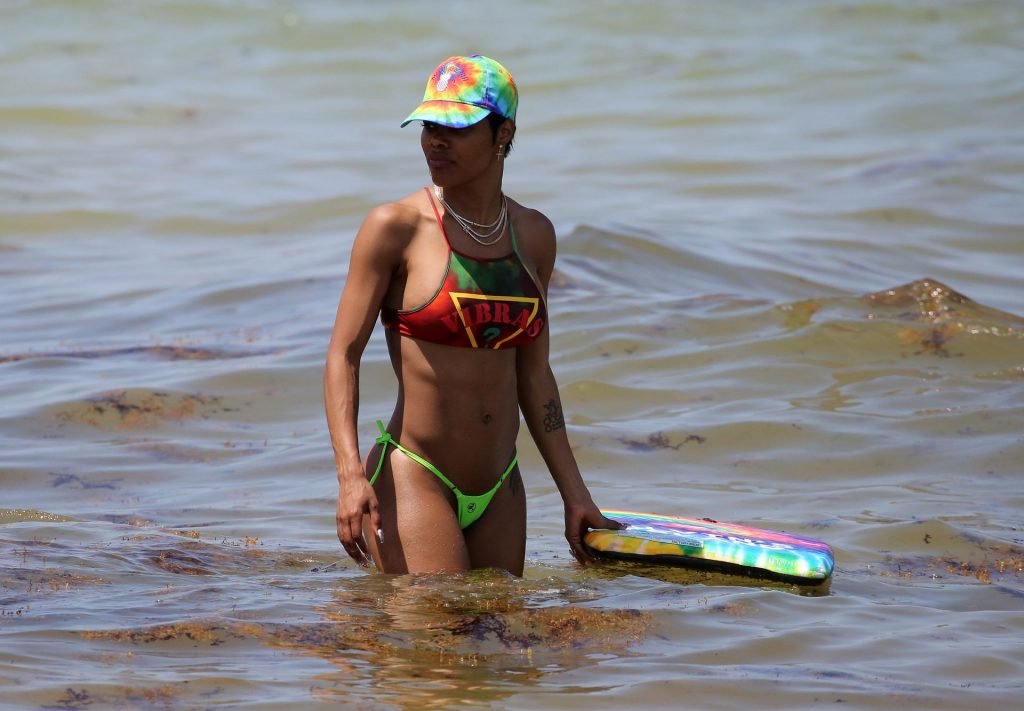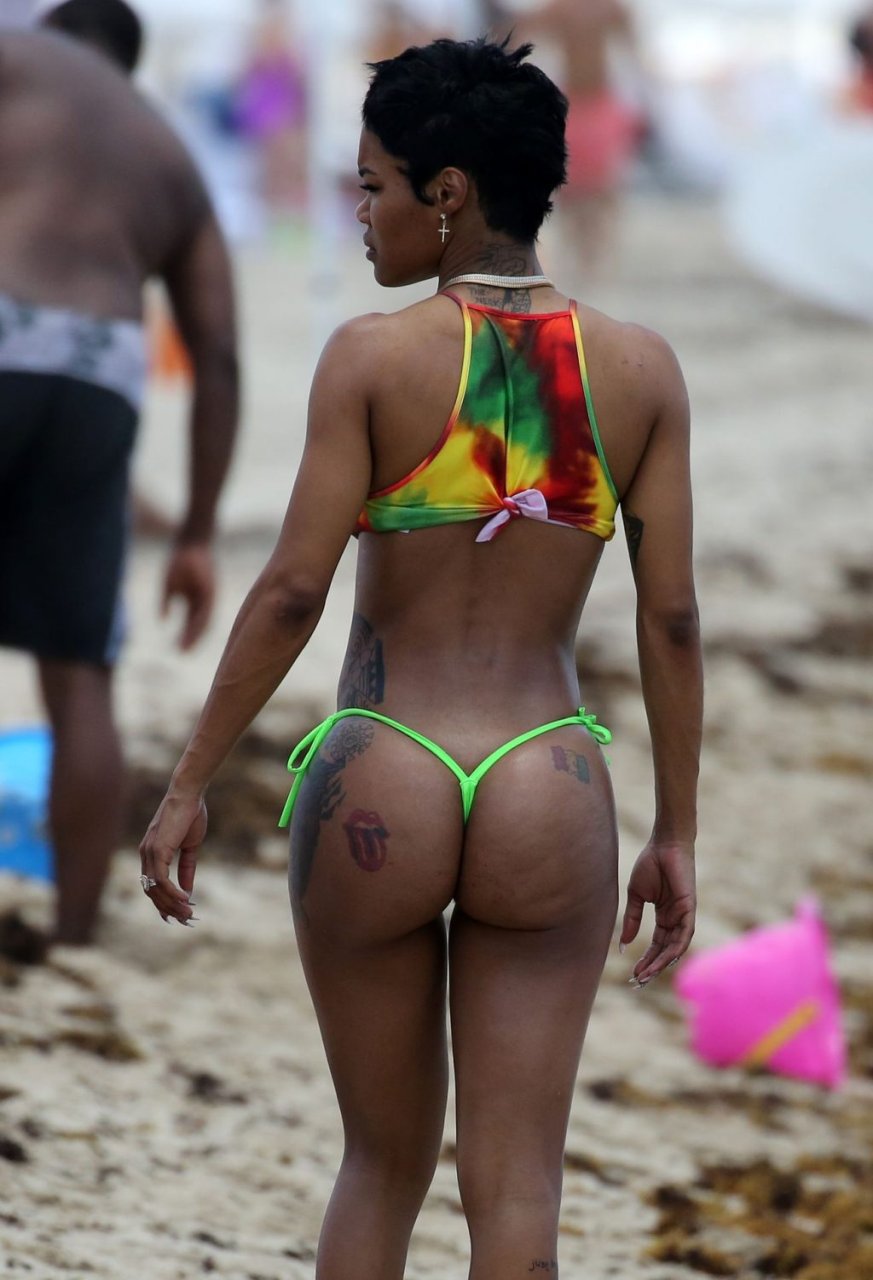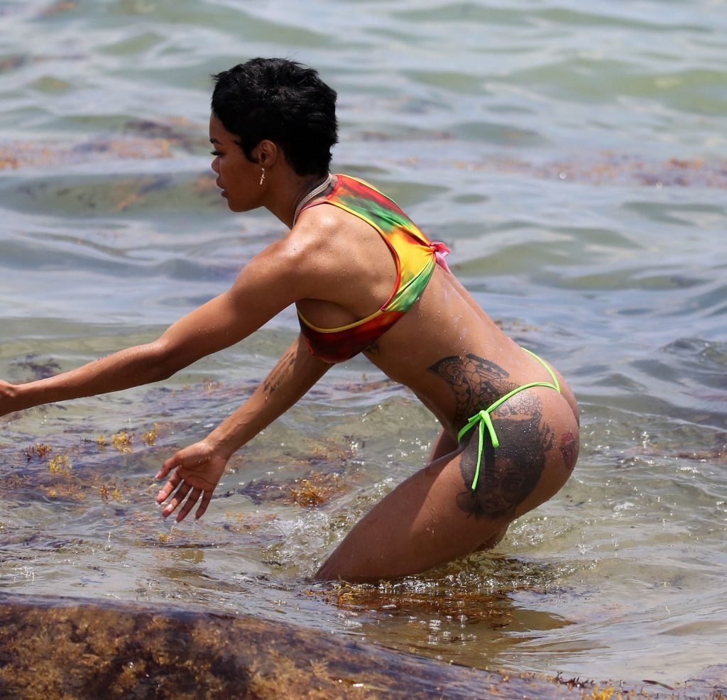 Певица Теяна Тейлор носит крошечное разноцветное бикини, наслаждаясь 4 июля с мужем, игроком НБА Имманом Шамперт и дочерью на Майами-Бич, 04.07.2019.