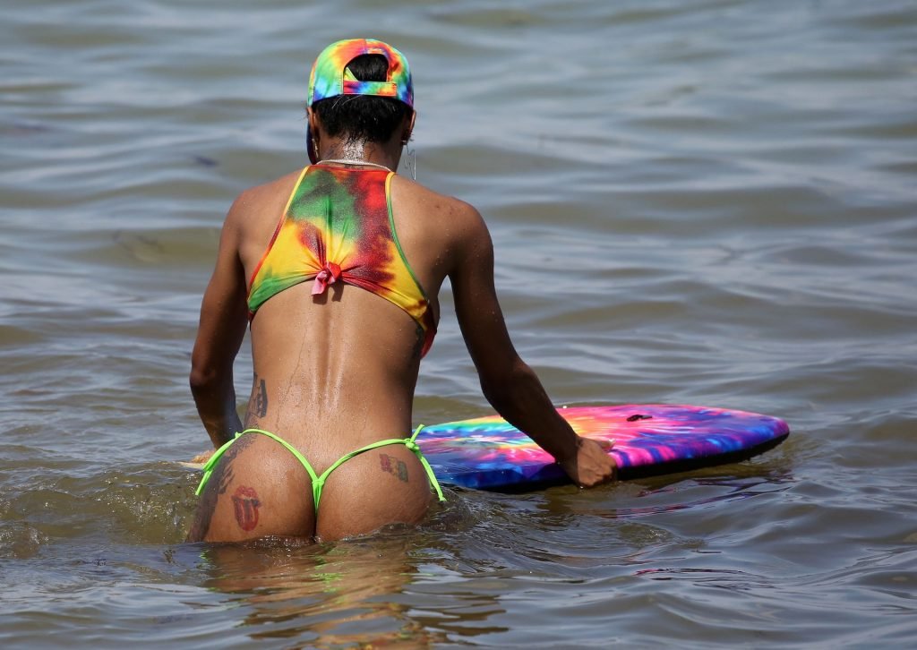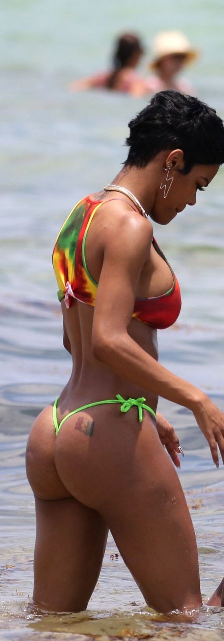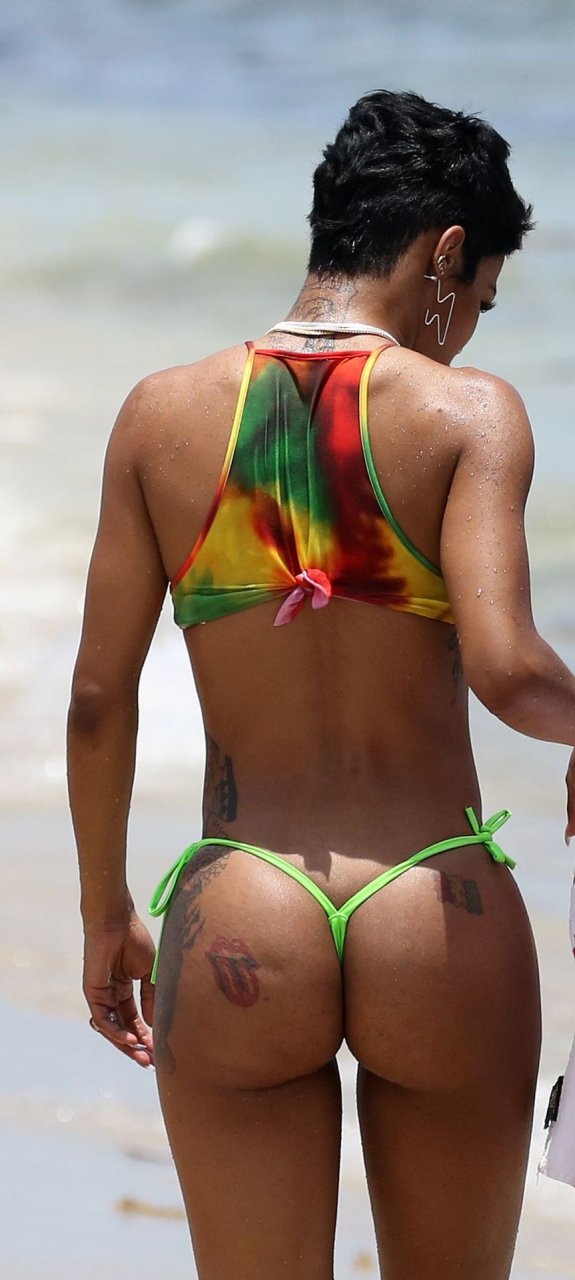 О боже, круглая попа и микробикини, известное как бразильское бикини. Это идеально ей подходит, хотел бы увидеть больше её фото на пляже, очень горячо, возбудило меня!!
