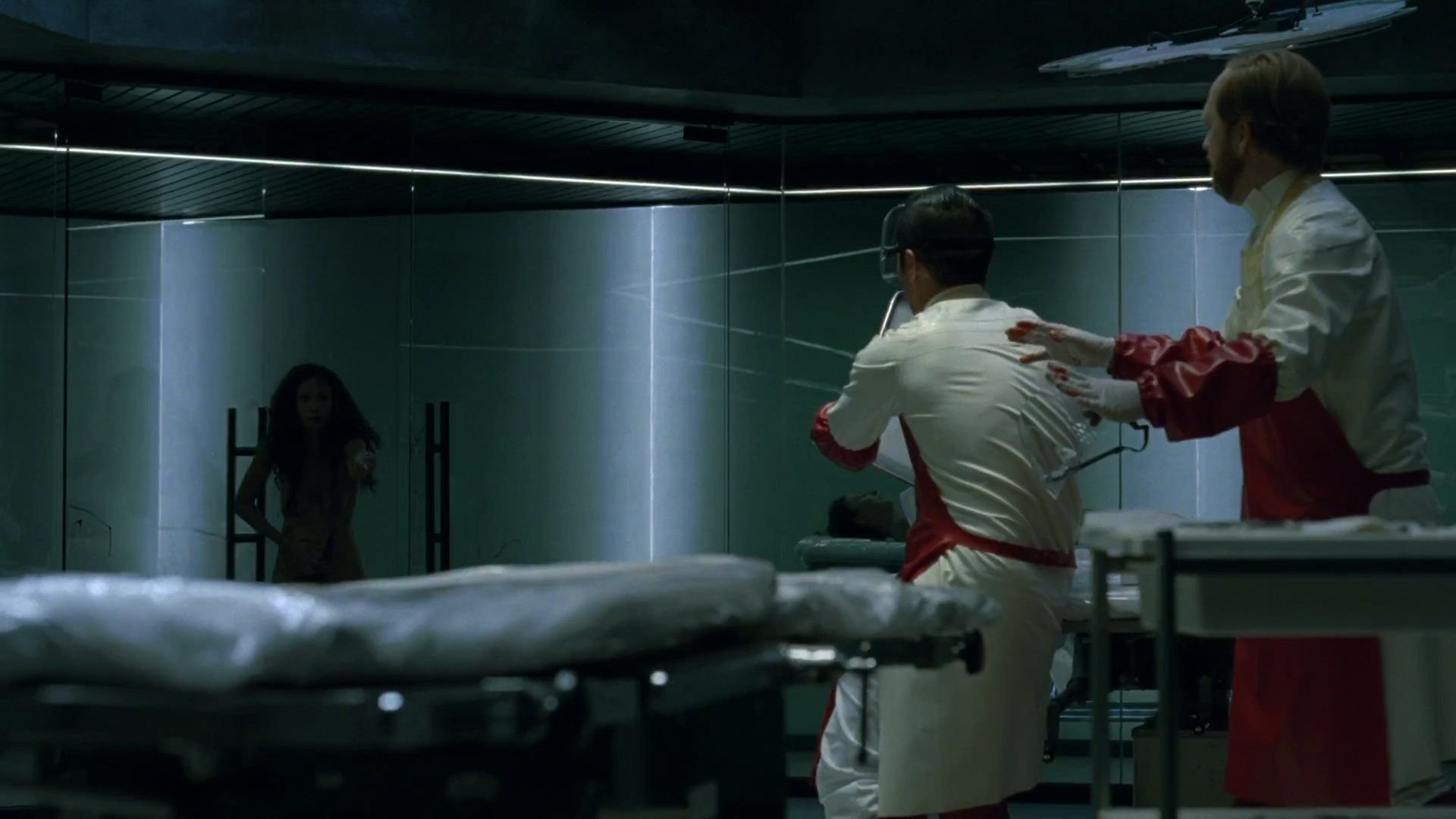 Новые скриншоты и клипы с Тэнди Ньютон (в роли Мэйв) и Джеки Мур (в роли Проститутки) из Западный мир (2016) s01e02.