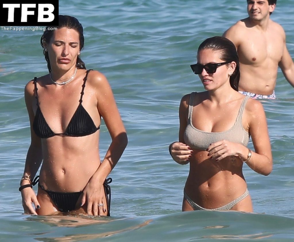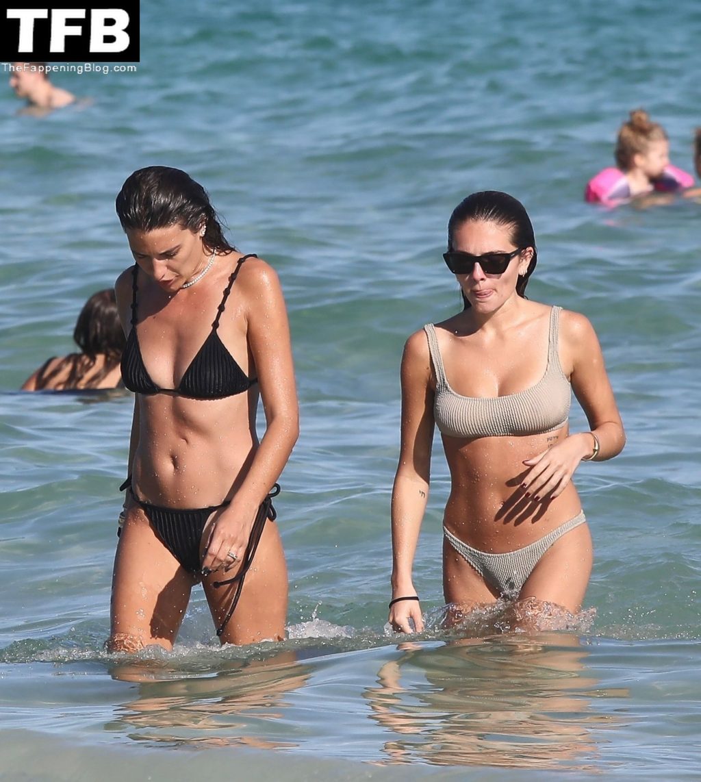 Французская модель Тилан Блондо вместе с подругой наслаждается купанием на Майами-Бич, 30.12.2021. Бывшая «Самая красивая девушка в мире» носит купальник естественного цвета из двух частей и тёмные солнцезащитные очки во время пляжных забав.