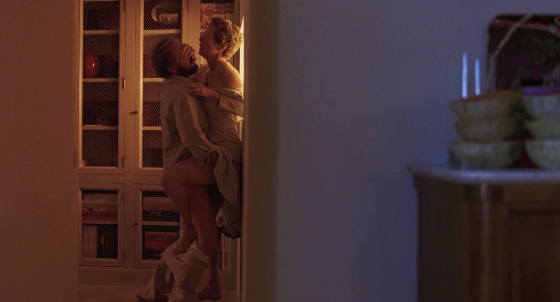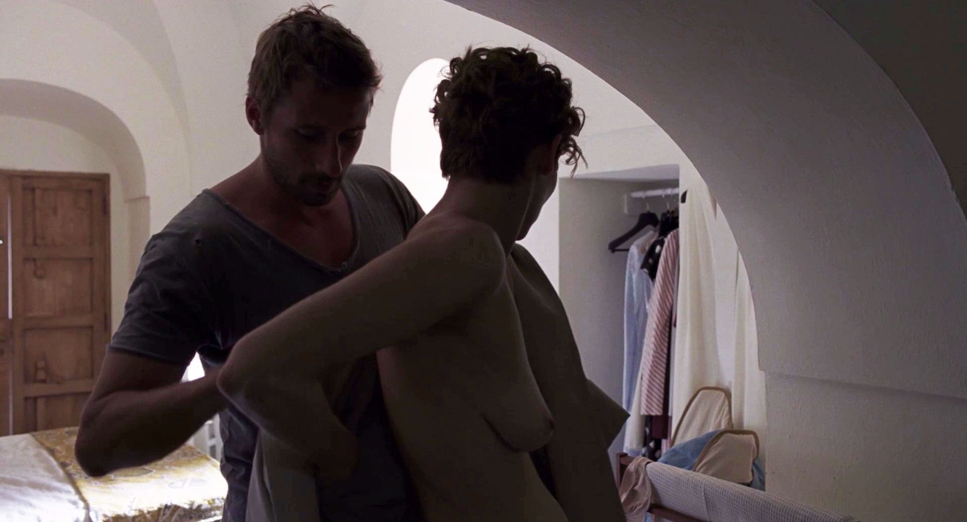 Мы видим левую грудь Марианны во время любовной сцены в бассейне.