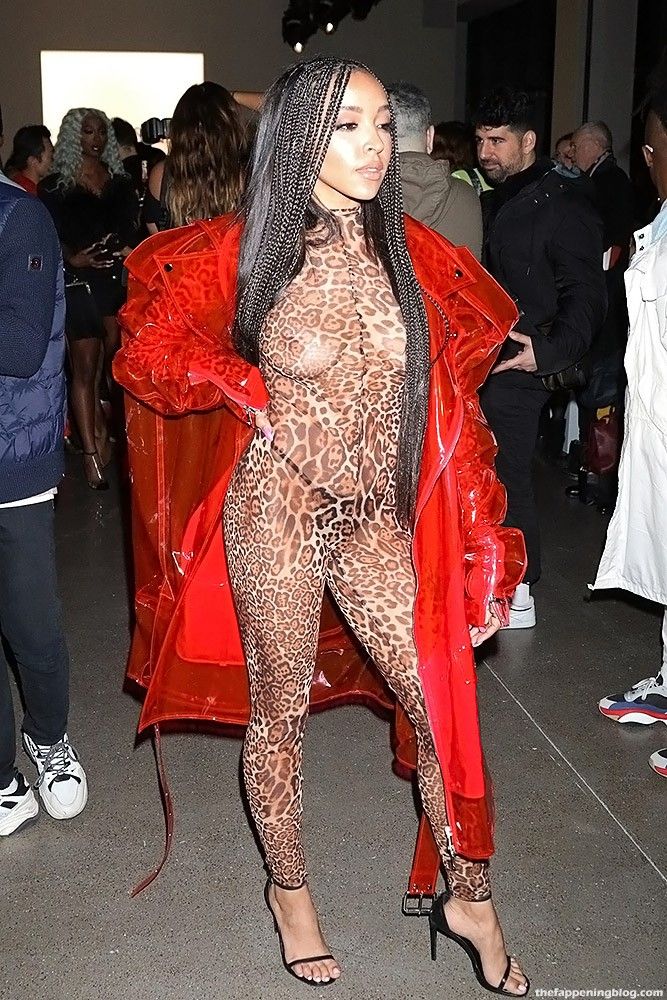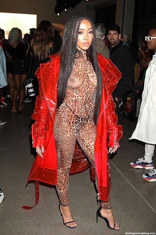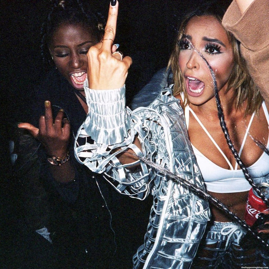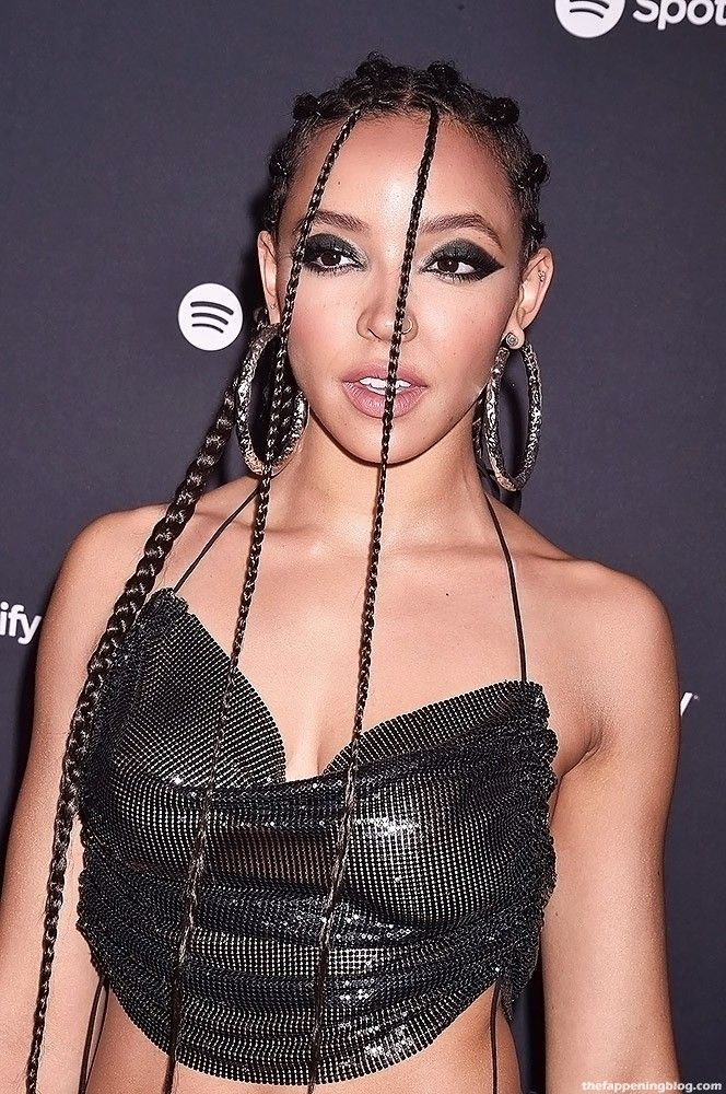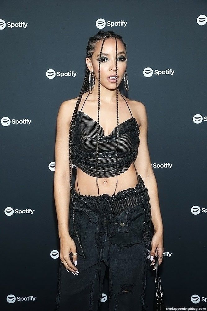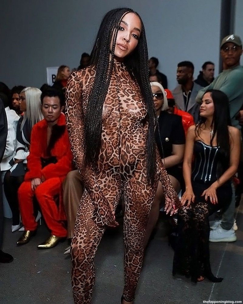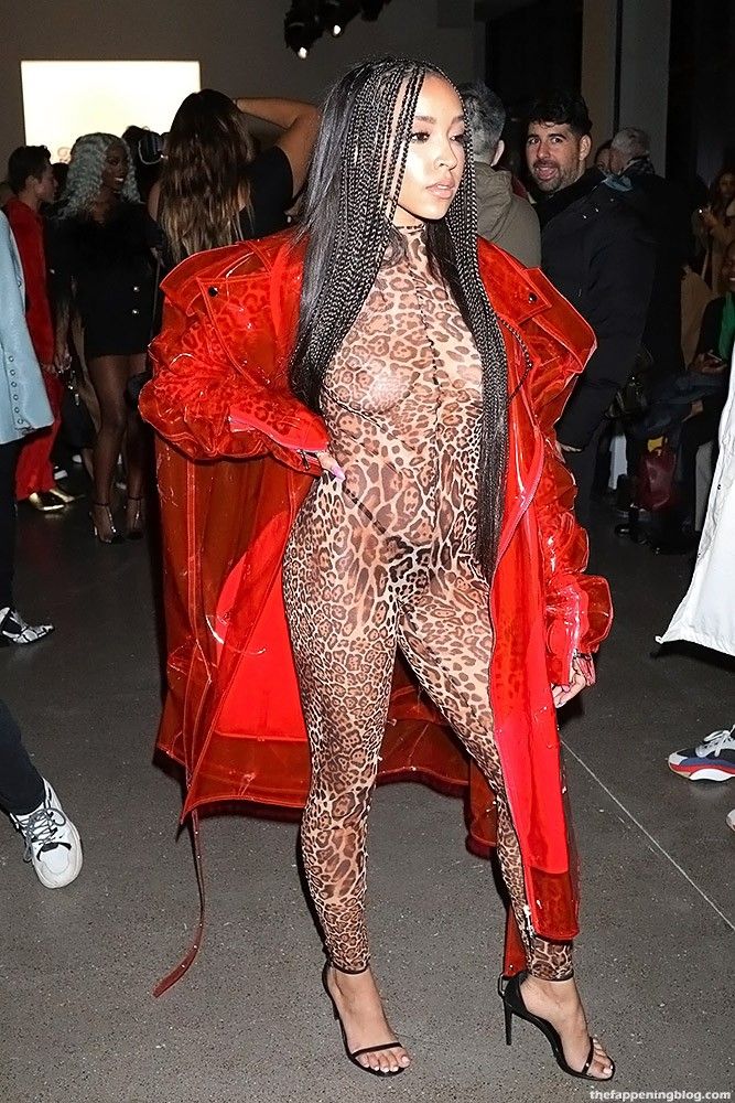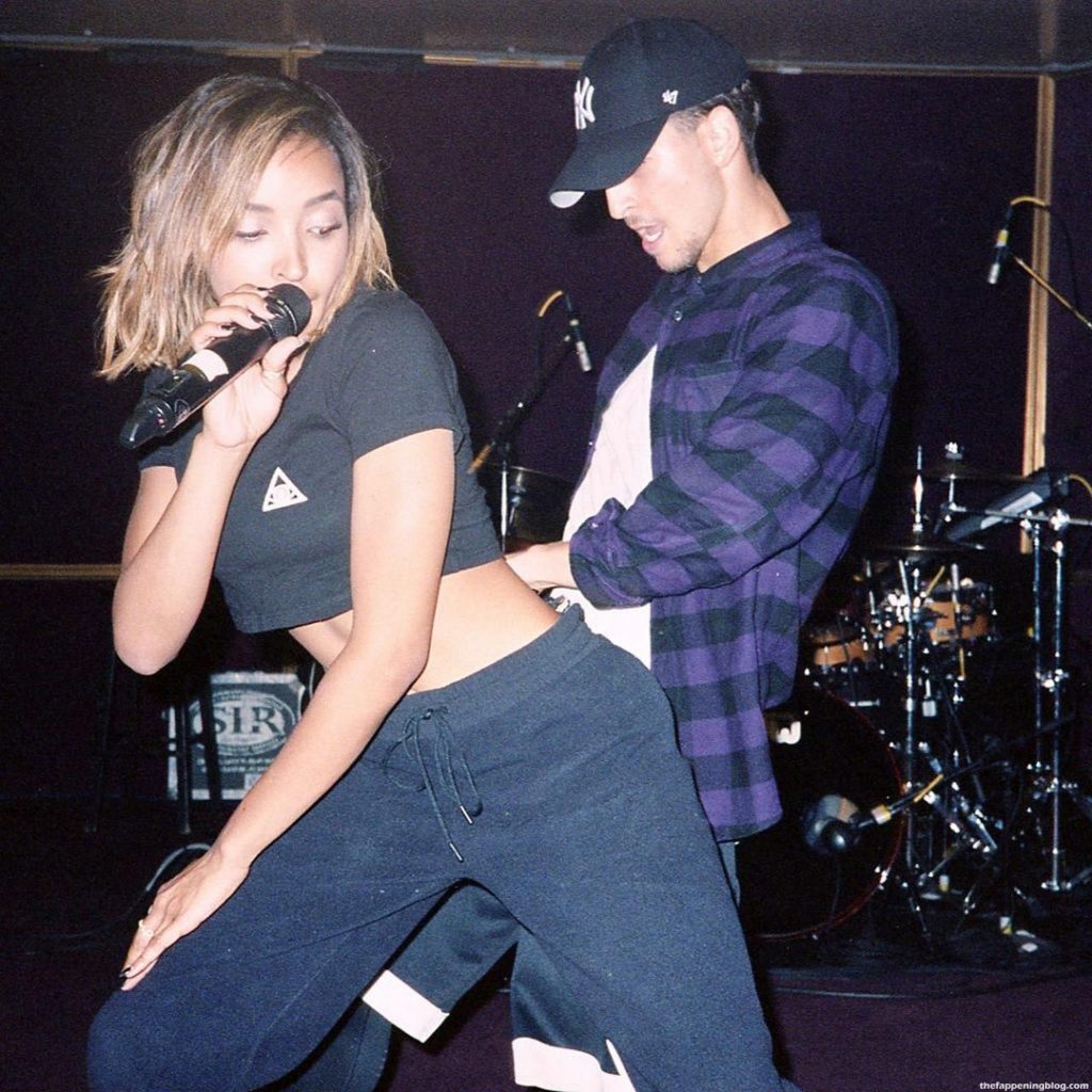 The slutty singer Tinashe loves to show her attributes in public. She wore the see-through dresses and topics several times, so she gave us her firm boobs on the silver plate.