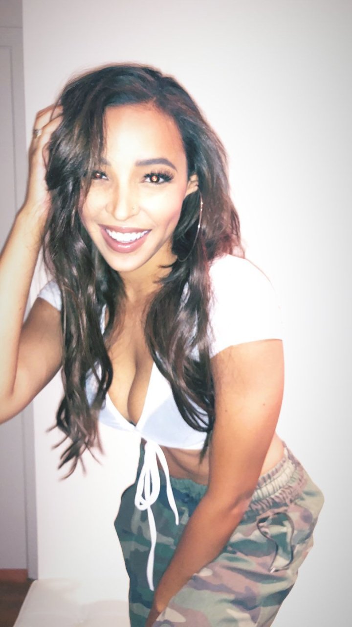 Tinashe демонстрирует декольте, выходя из ресторана Delilah в Уэст-Голливуде, 08.09.2018. Tinashe показывает живот, надевая камуфляжные брюки и белые туфли на каблуках.