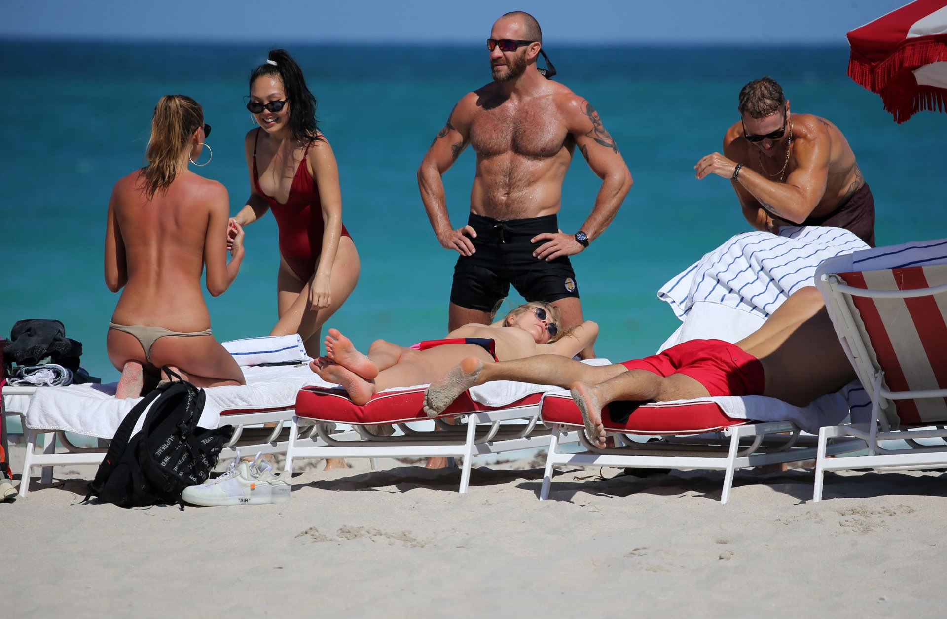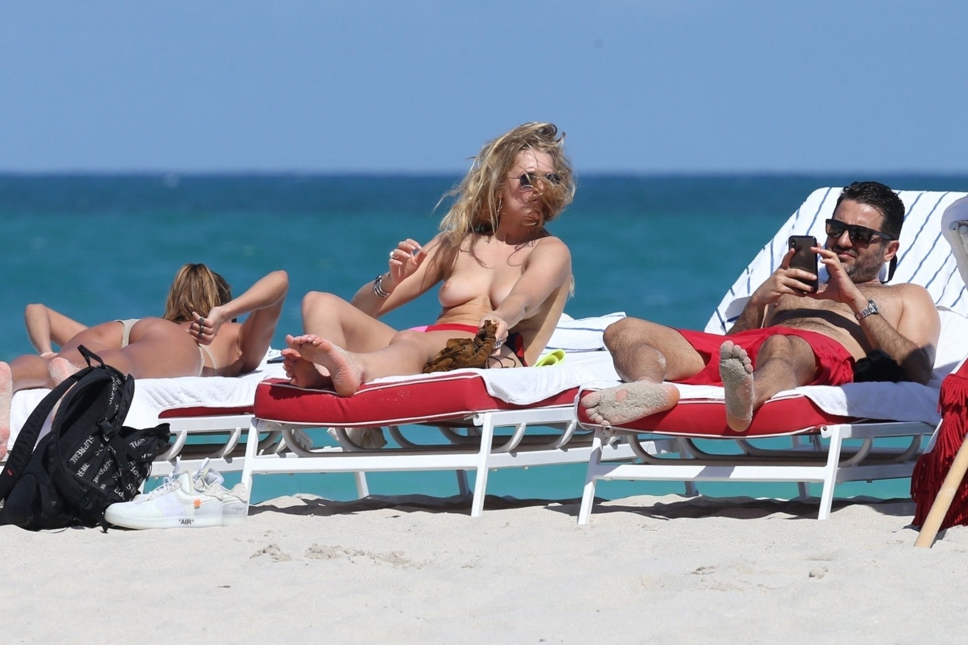 Модель и актриса Тони Гаррн отправилась на пляж с друзьями, чтобы позагорать в пасхальные выходные в Майами, 01.04.2018. Тони решила снять верхнюю часть купальника на день, выставив напоказ свою обнаженную грудь. Возможно, Тони просто не хочет иметь загар с линиями.