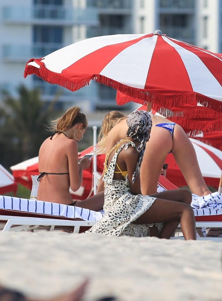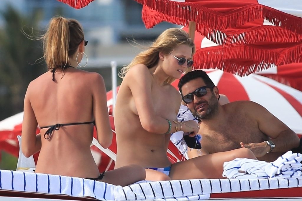 Модели Тони Гаррн, 25 лет, и Алина Байкова, 28 лет, веселятся в Майами с друзьями во время весенних каникул, 01.04.2018. Гаррн снялась топлесс и немного позировала для благодарного друга, прежде чем окунуться в океан. Если вы пропустили предыдущий пост, посмотрите его.