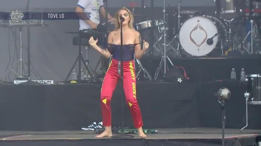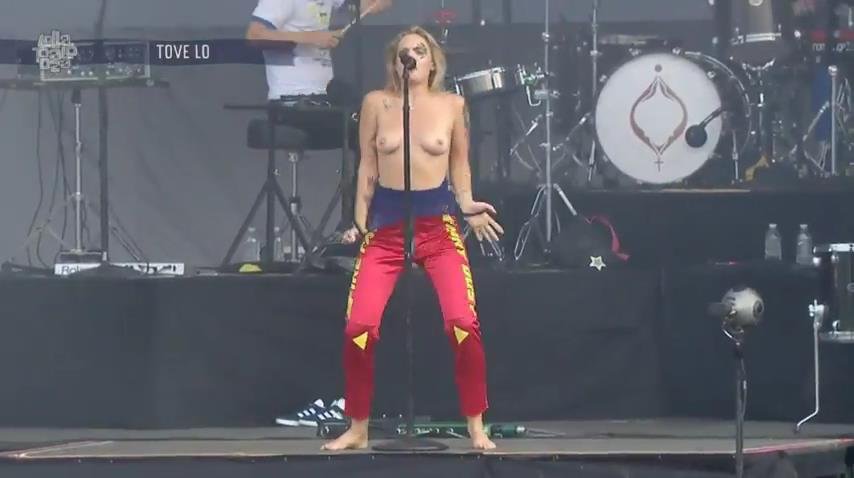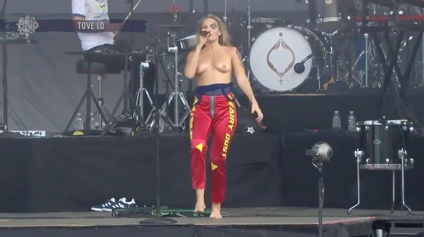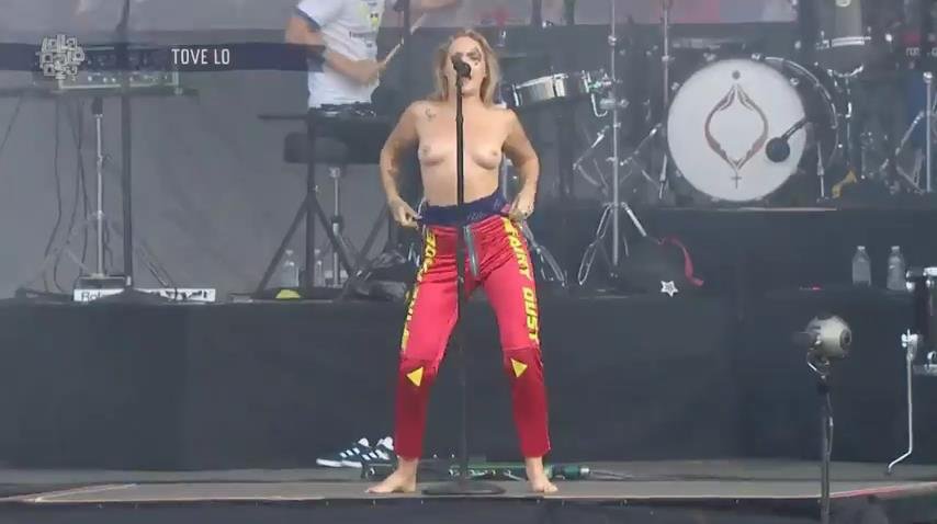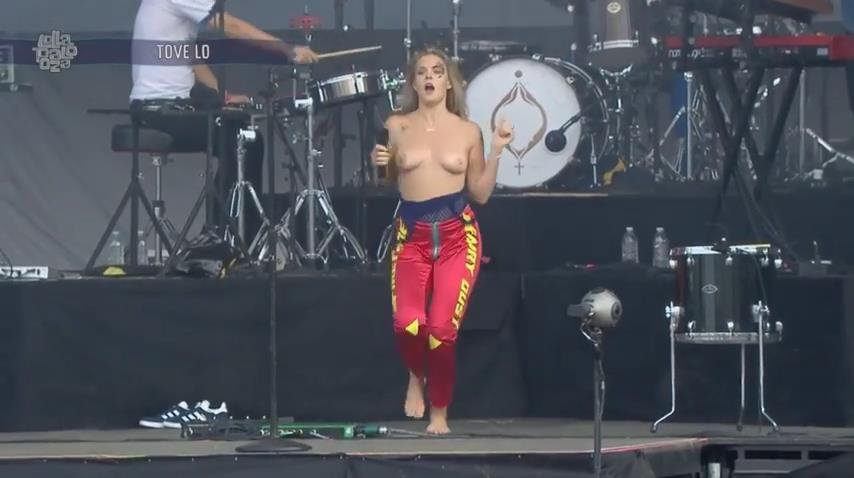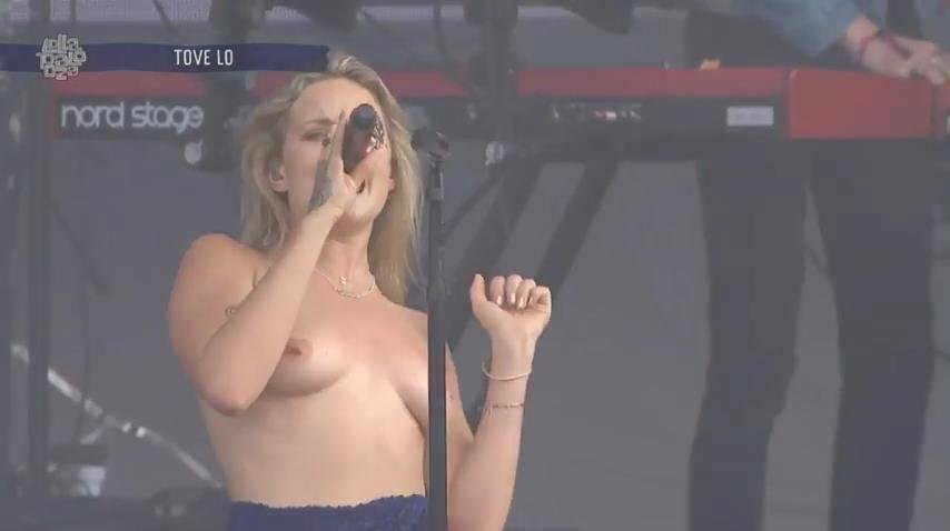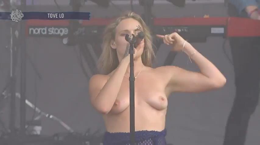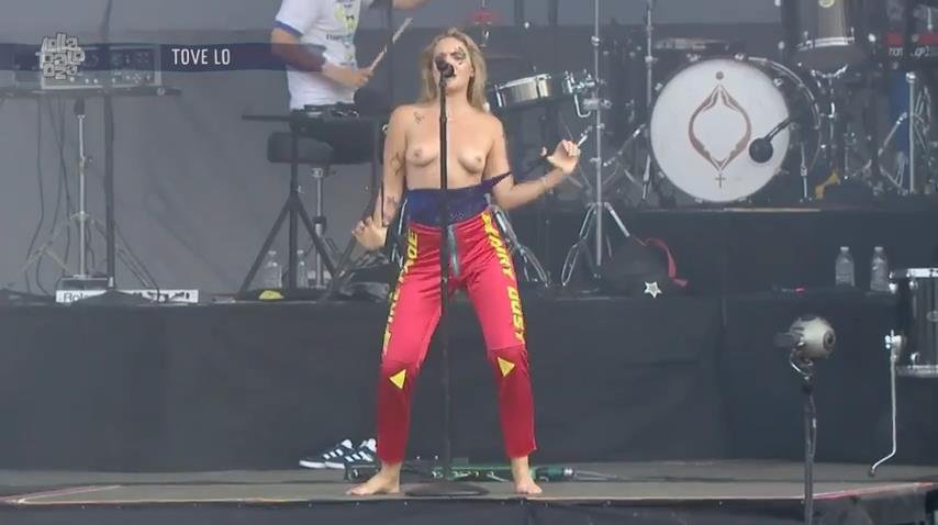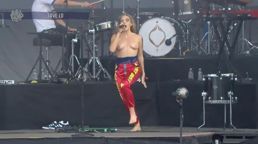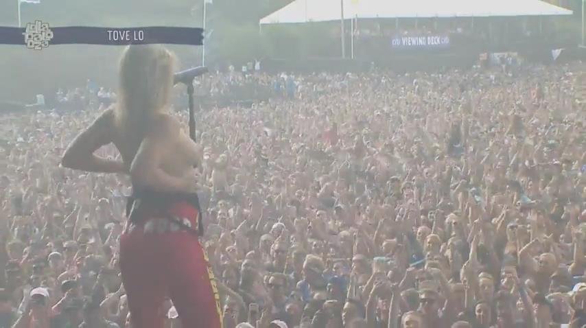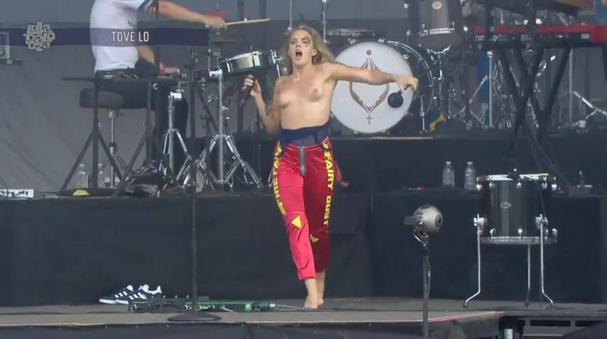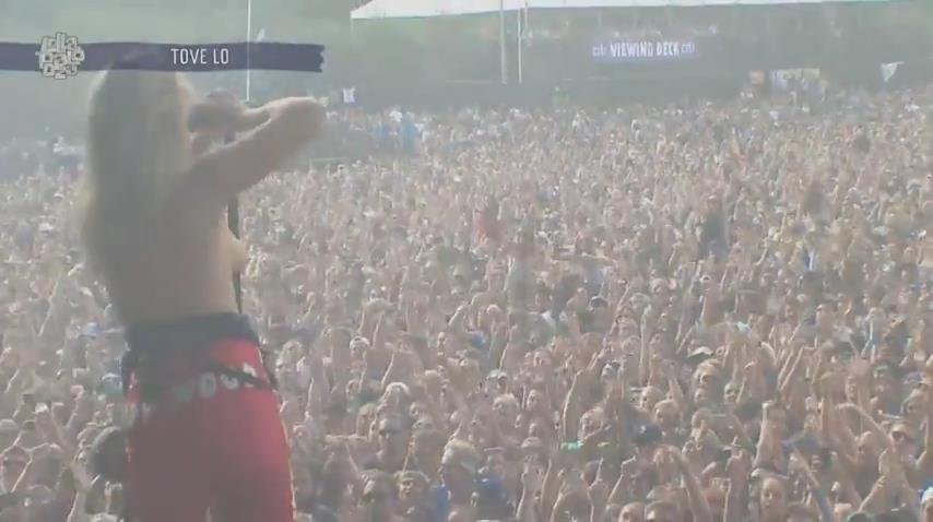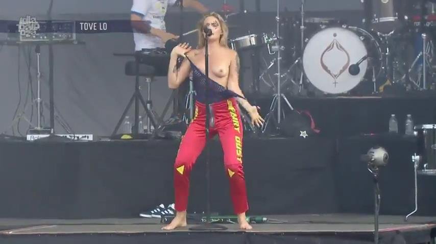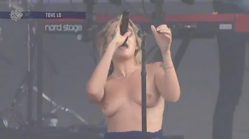 29-летняя певица Tove Lo демонстрирует свои груди на сцене Lollapalooza в Чикаго, 06.08.2017.