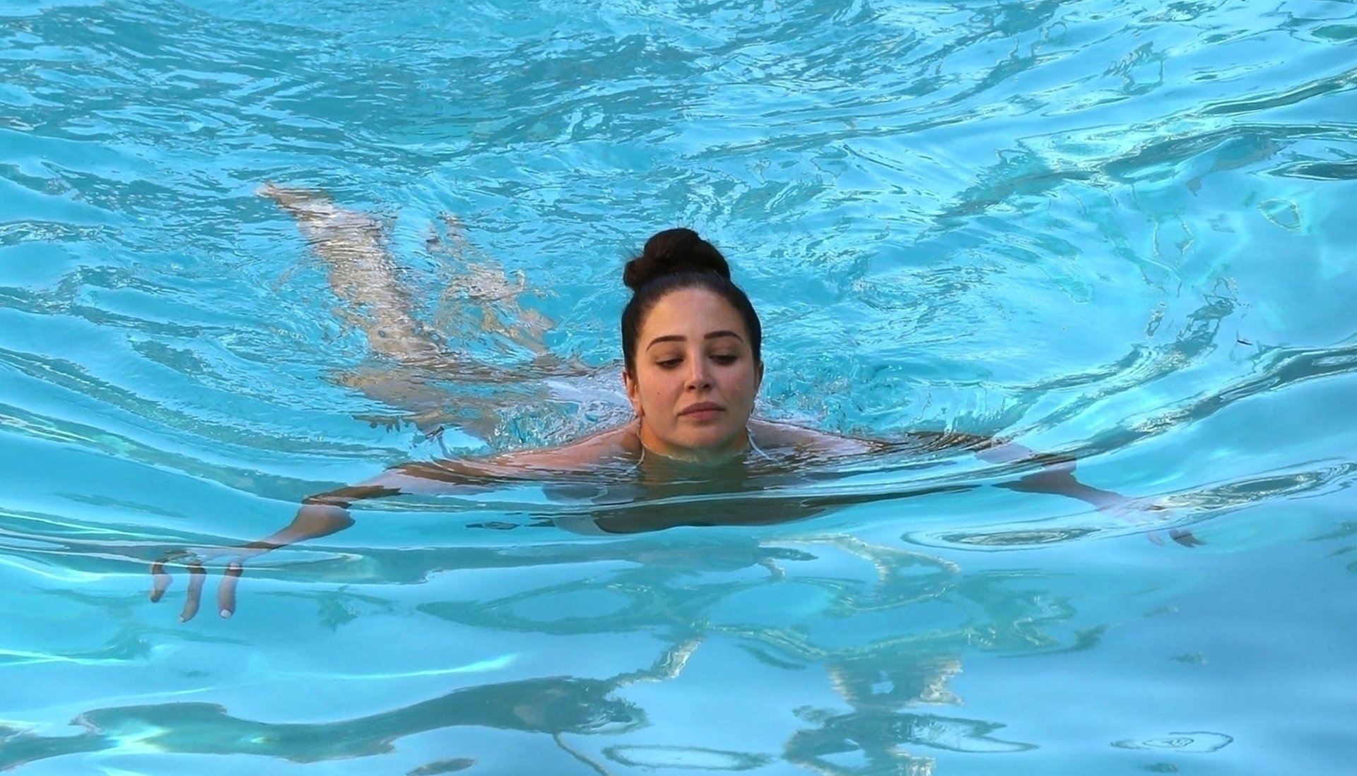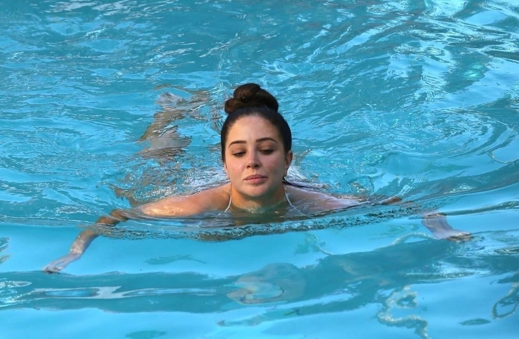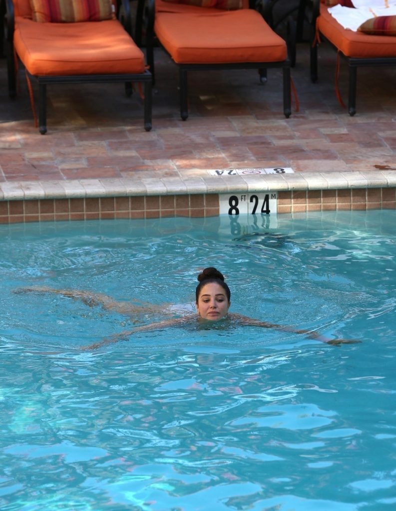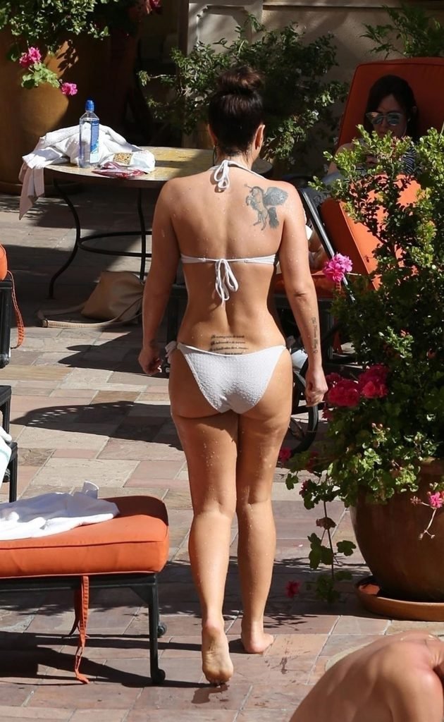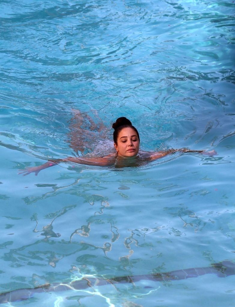 Британская рэперша Тулиса Контоставлос (известная также как Тула Полинеа) демонстрирует своё сексуальное тело в белом бикини, наслаждаясь солнцем у бассейна в Лос-Анджелесе, 06/06/2018.