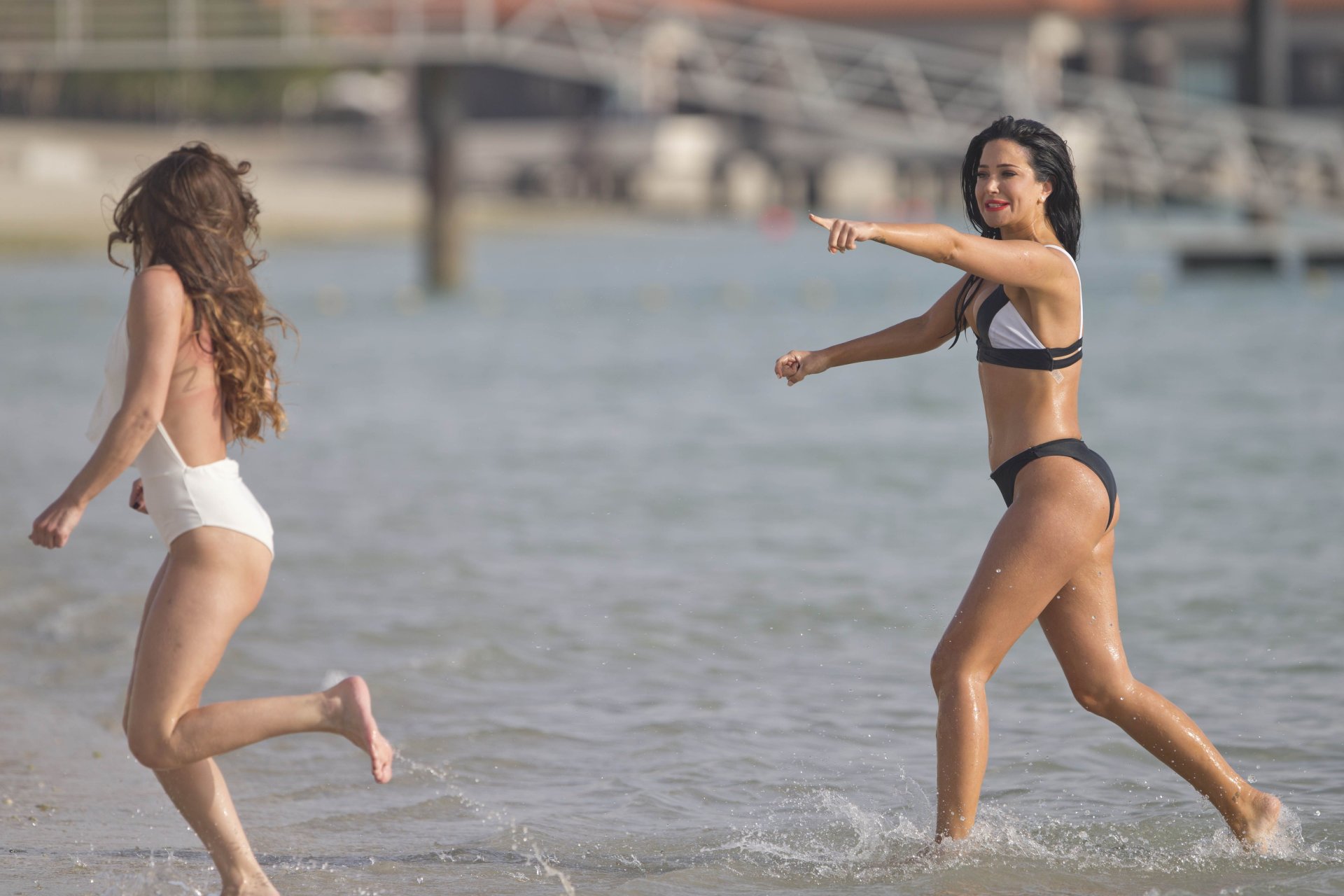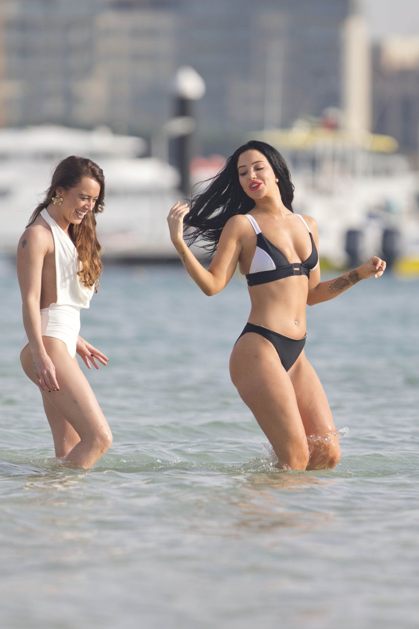 Tulisa Contostavlos и неизвестная девушка, замеченные в Дубае в бикини, 19.03.2016. Мокрое тело, небольшой соскальзывание соска и красивая попа. Тулиса Контоставлос — английская певица, автор песен, актриса и телеведущая. Возраст: 27 (13 июля 1988).