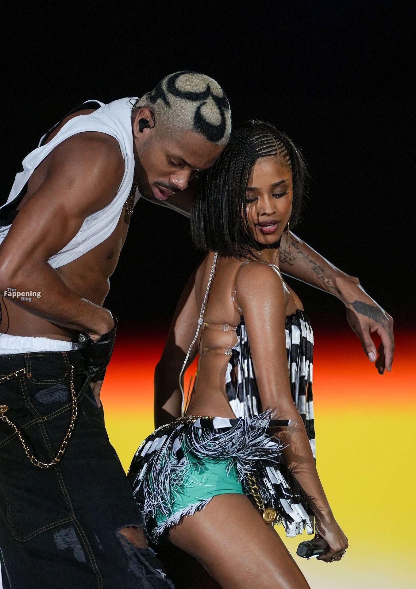 Tyla выглядела сногсшибательно на фестивале Global Citizen в Нью-Йорке, в платье с бахромой поверх бирюзовых шорт. Она продемонстрировала свои ноги и ягодицы во время выступления.