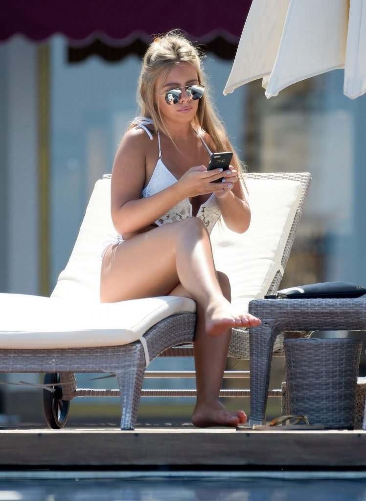Tyne-Lexy Clarson наслаждается днем у бассейна на отдыхе в Турции, 28.06.2017. Tyne-Lexy Clarson — звезда реалити-шоу (Love Island 2017). Возраст: 20 лет.