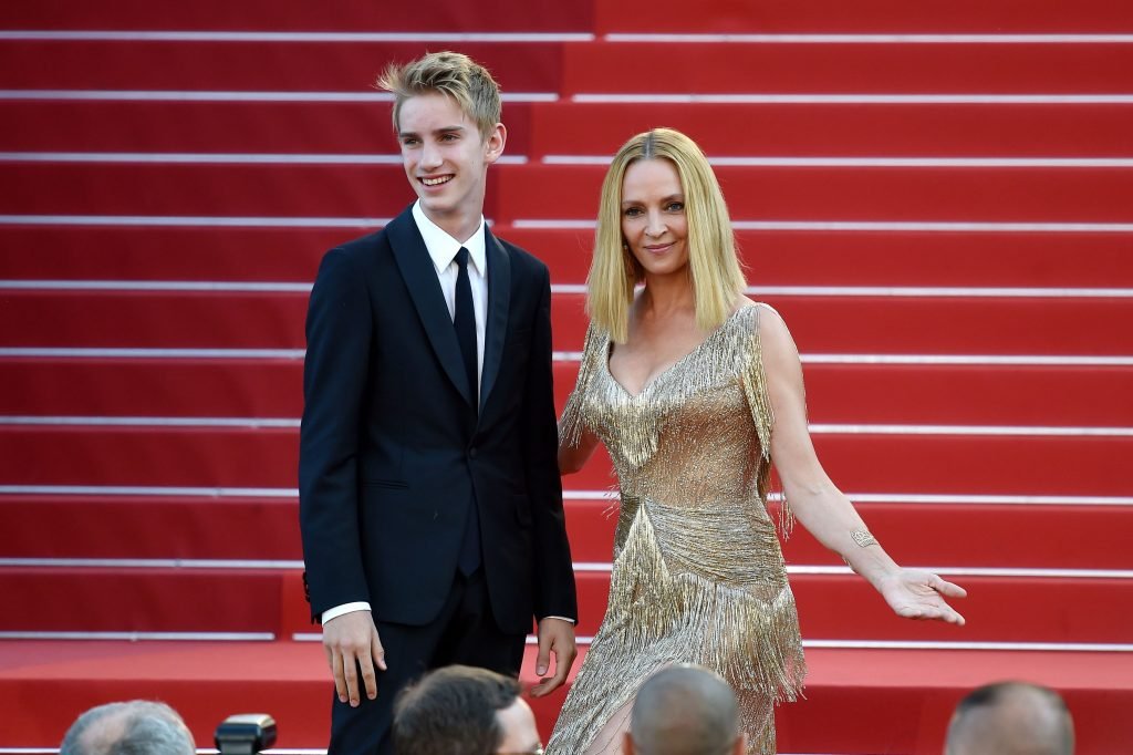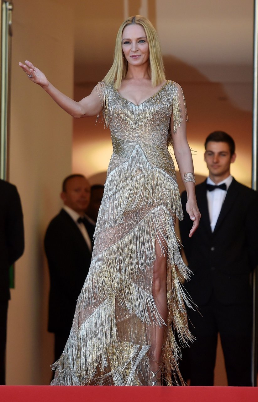 Ума Турман носит прозрачное платье Versace на закрытии Каннского фестиваля, 28.05.2017. Ума Турман — американская актриса (Опасные связи (1988)) и модель. Возраст: 47 лет.