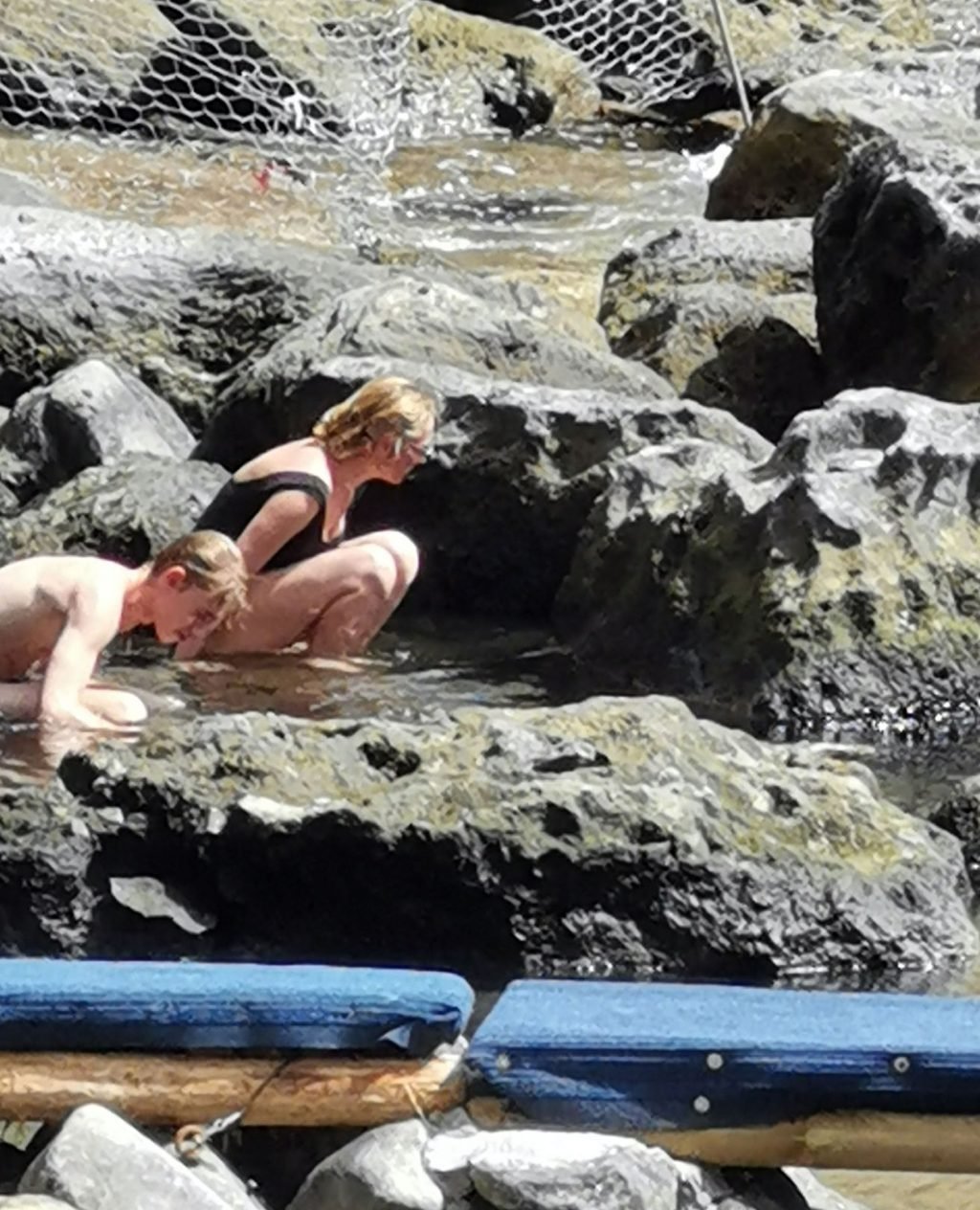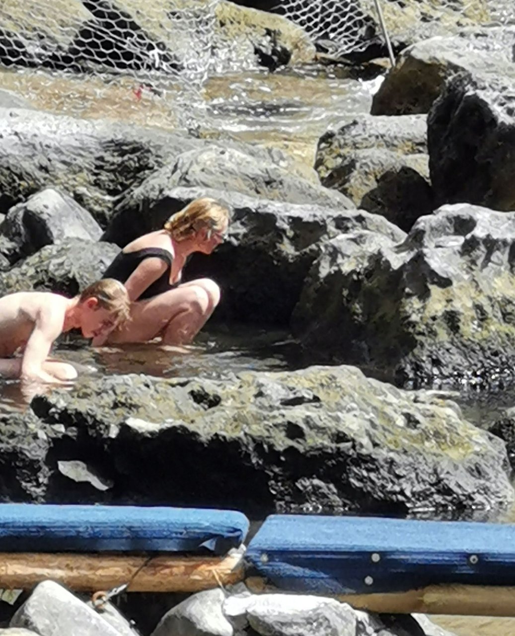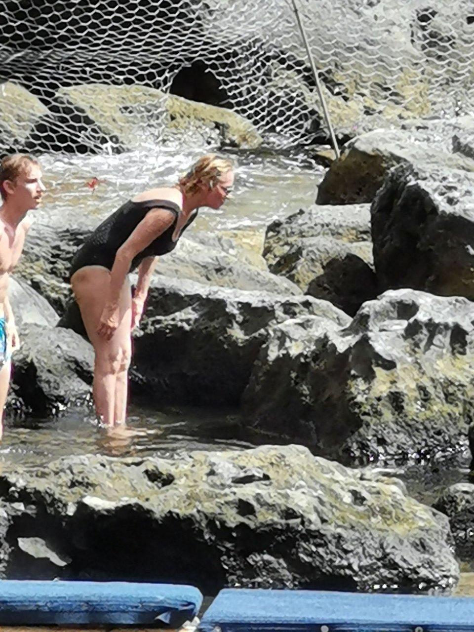 Американская актриса и модель Ума Турман была сфотографирована в черном купальнике, когда осматривала соленые бассейны со своим сыном во время отпуска на Искье, 16.06.2019.