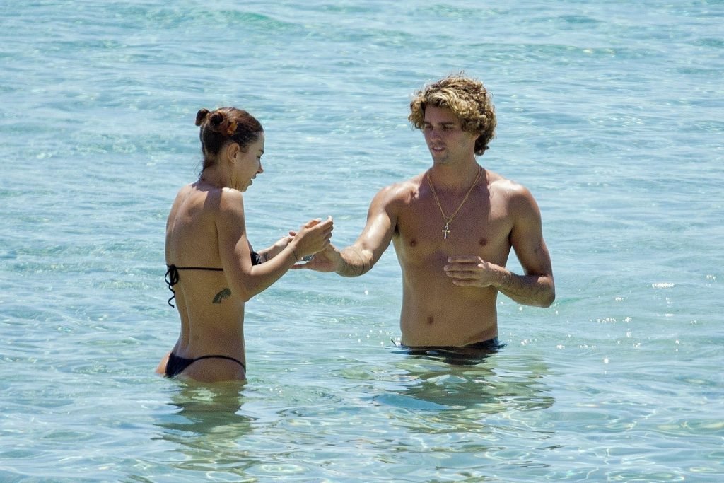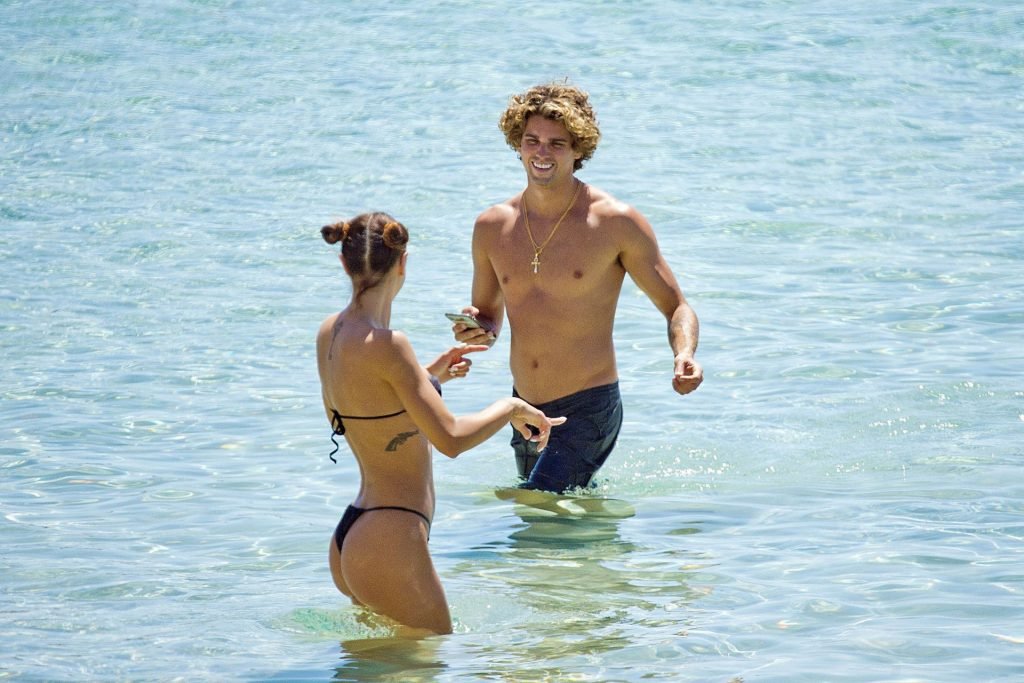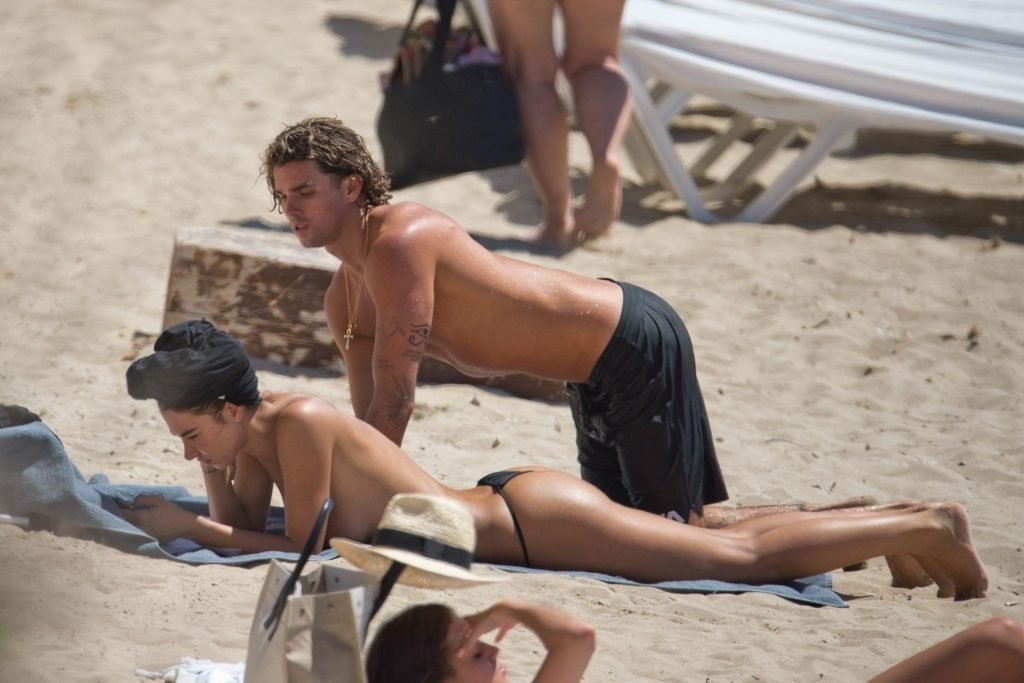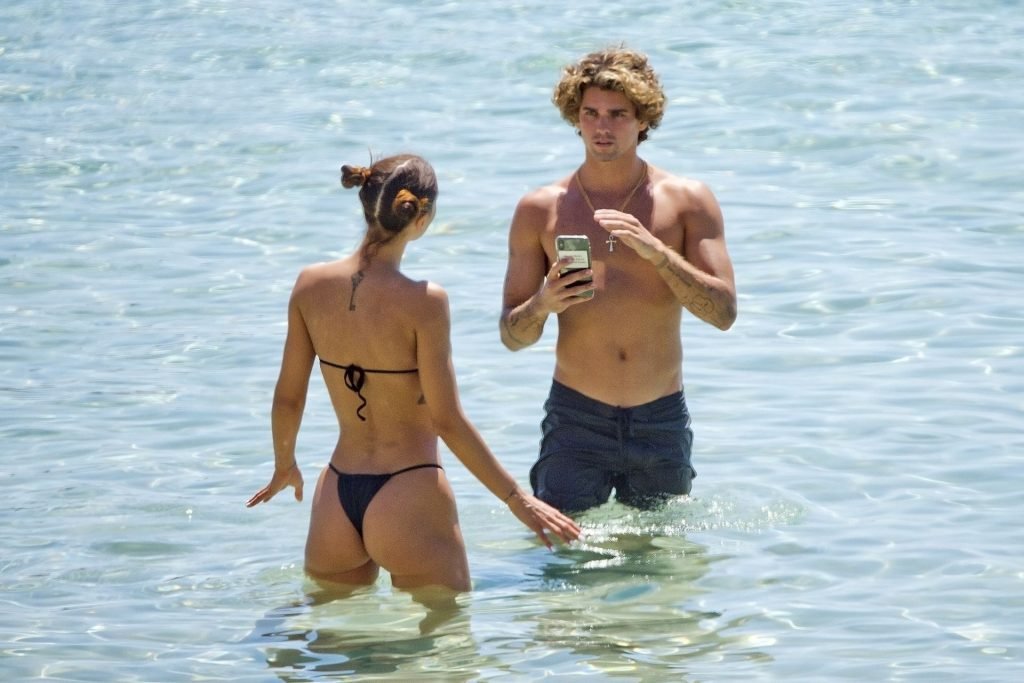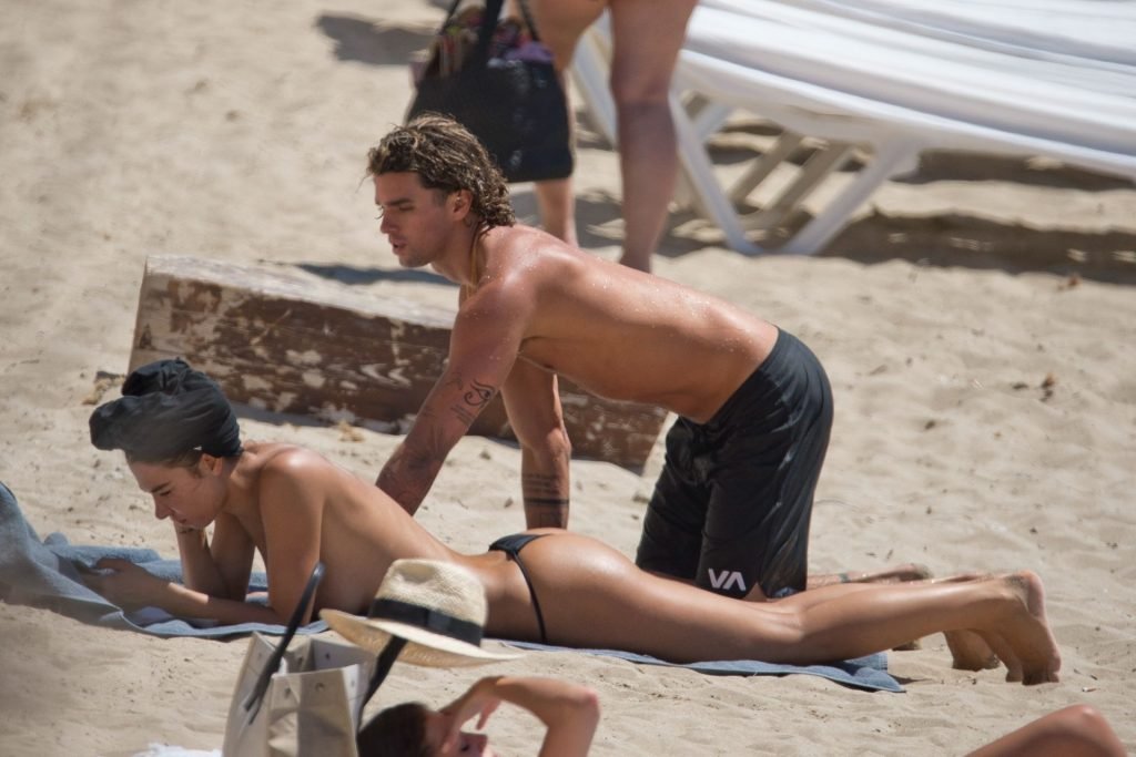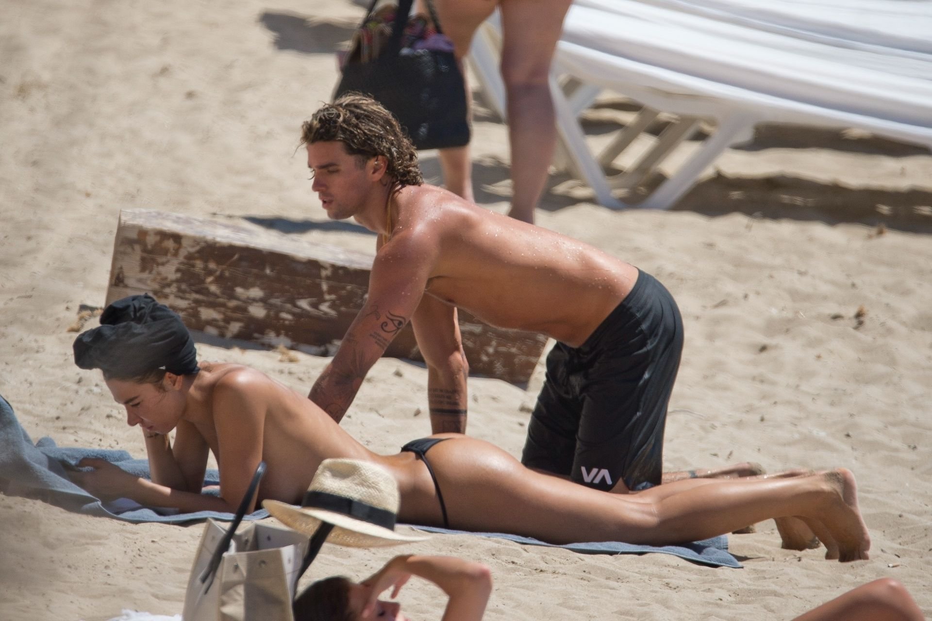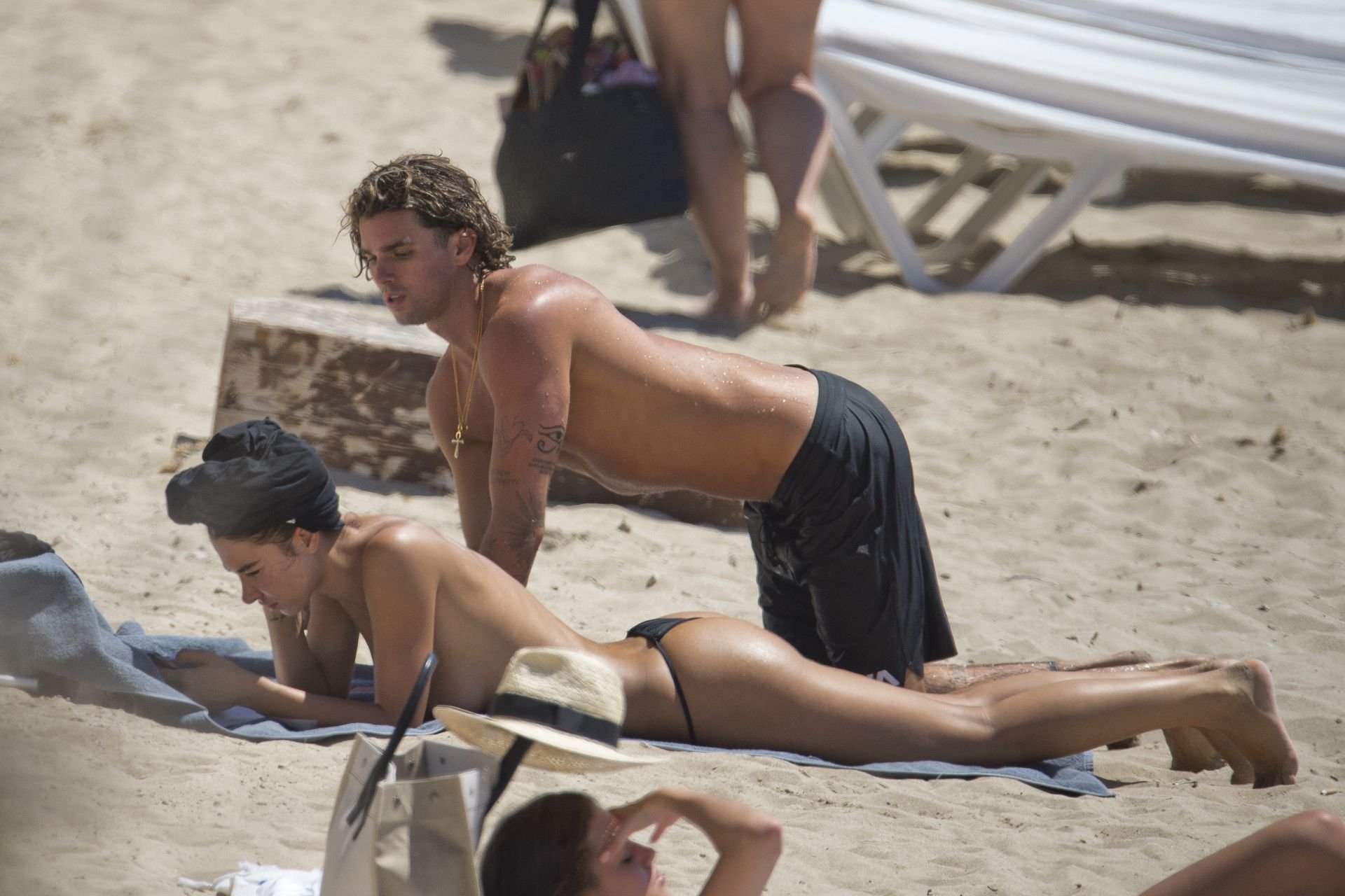Влюбленные Валентина Фрадеграда и Джей Алваррез наслаждаются днем на пляже в Ибице, 22.05.2019. Джей делает снимки своей прекрасной девушки Валентины, прежде чем расслабиться топлес на пляже.