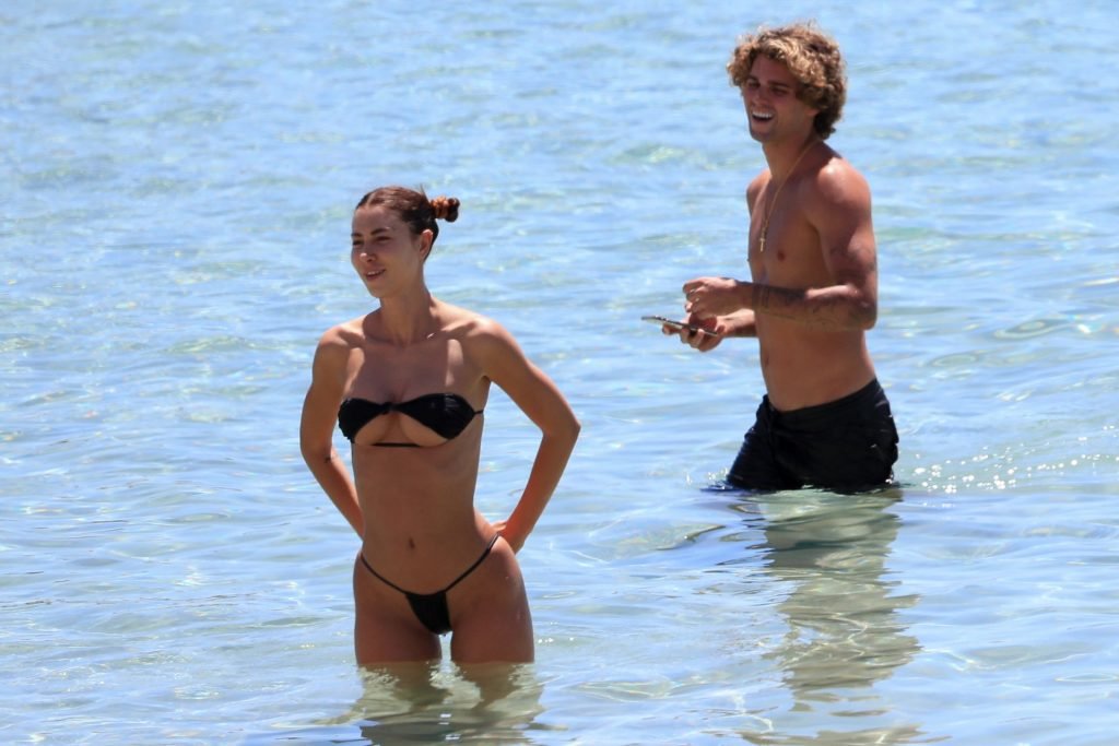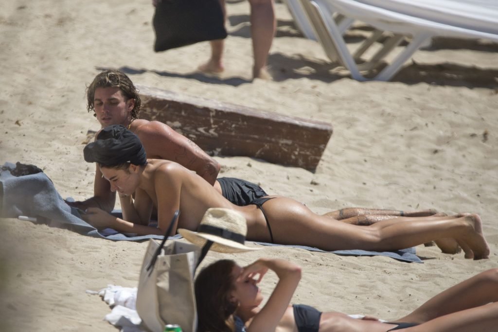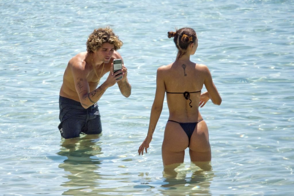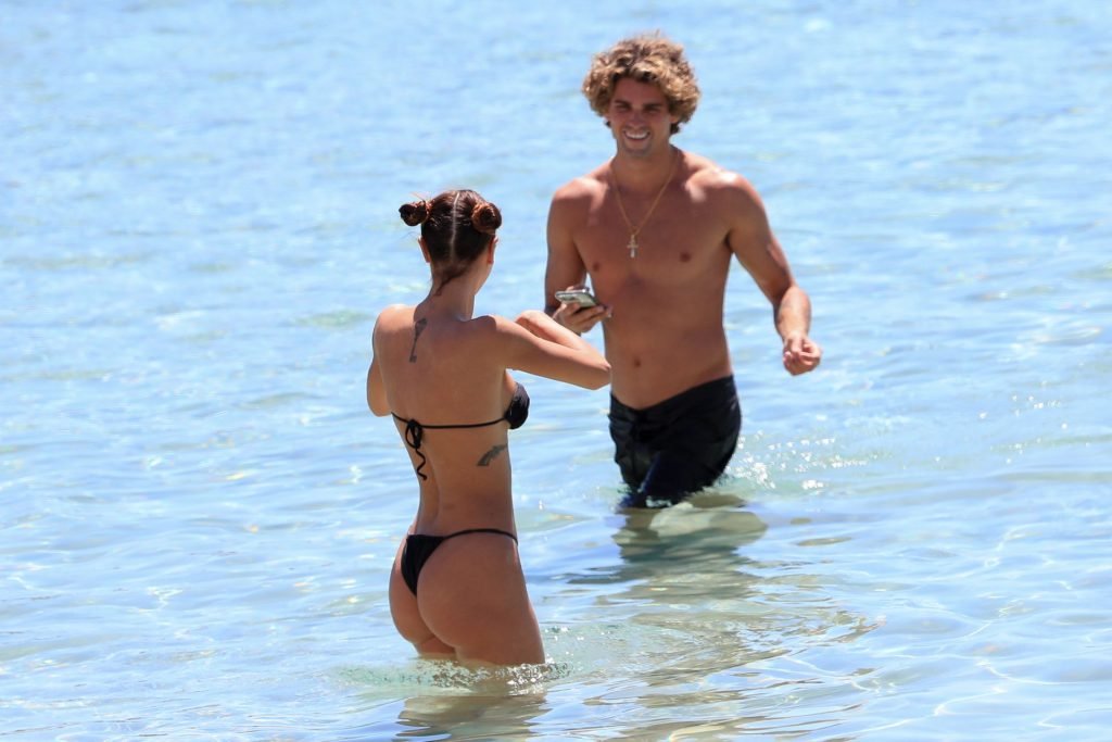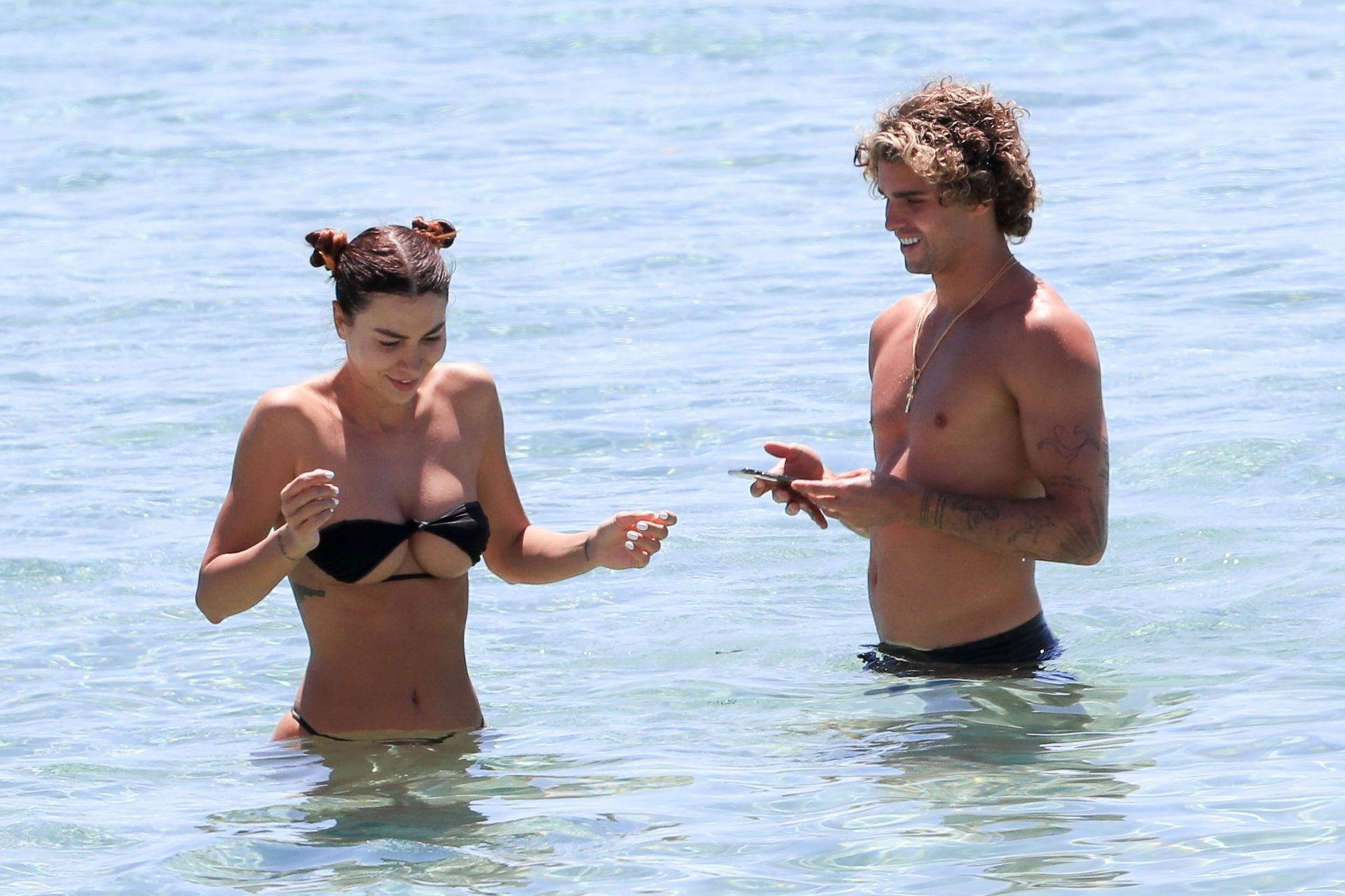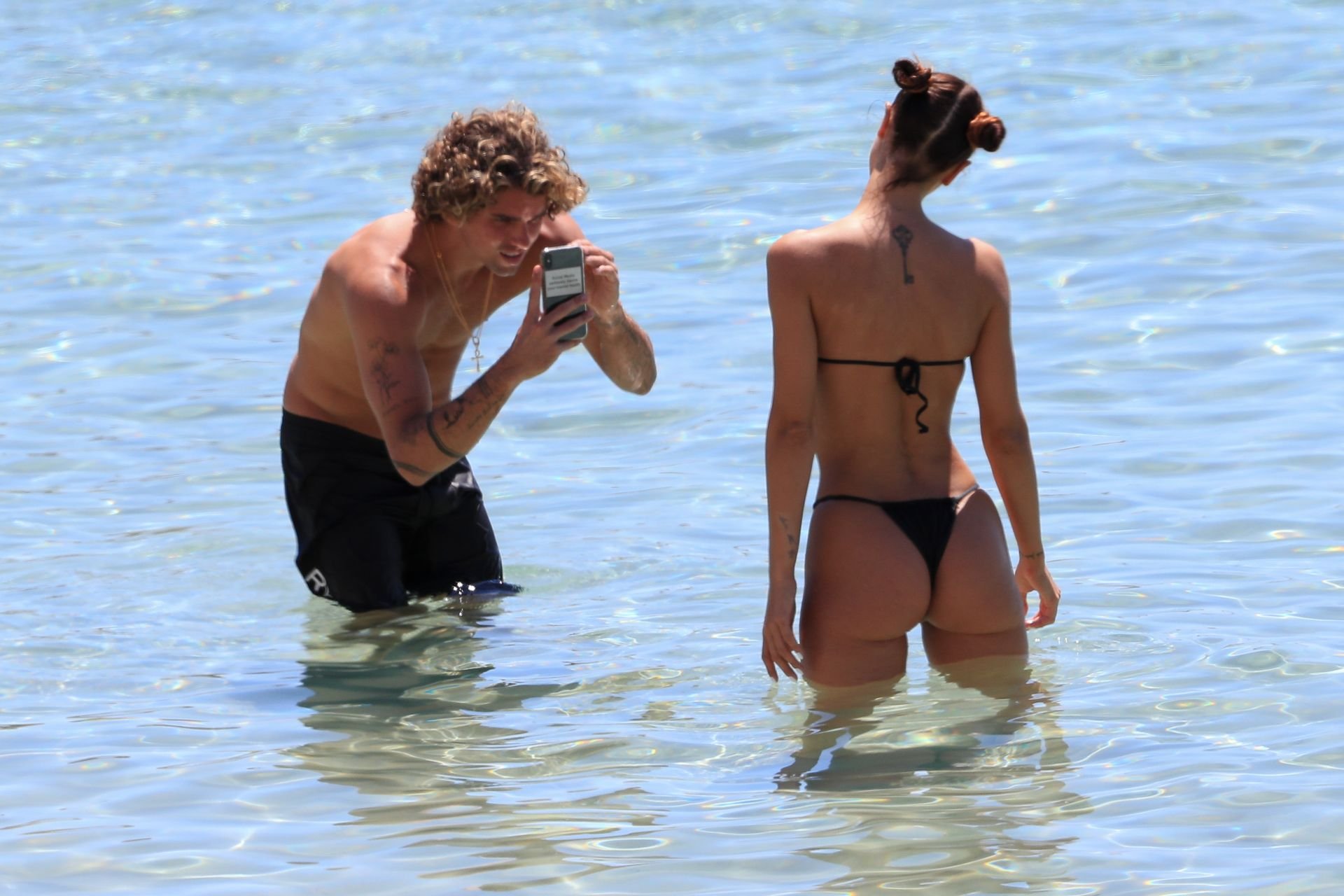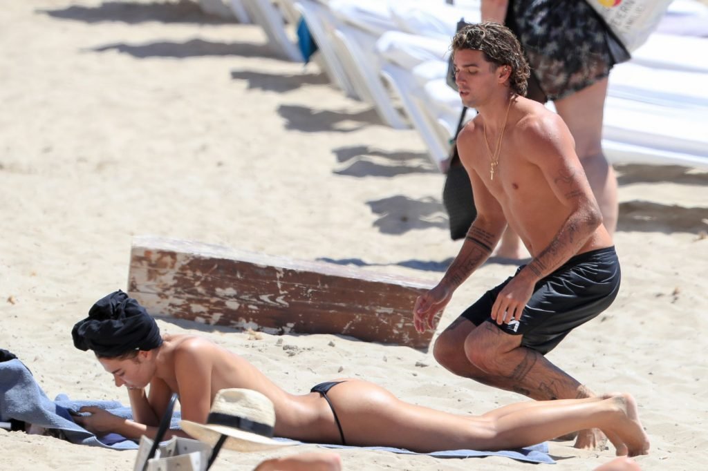 Влюбленные Валентина Фрадеграда и Джей Алваррез наслаждаются днем на пляже в Ибице, 22.05.2019. Джей делает снимки своей прекрасной девушки Валентины, прежде чем расслабиться топлес на пляже.