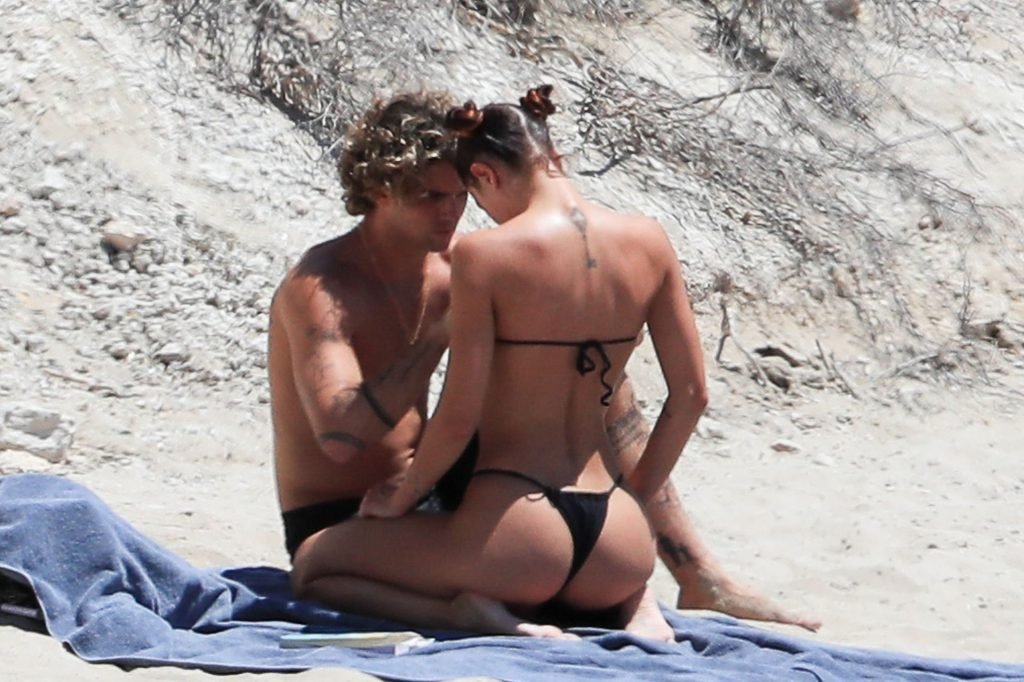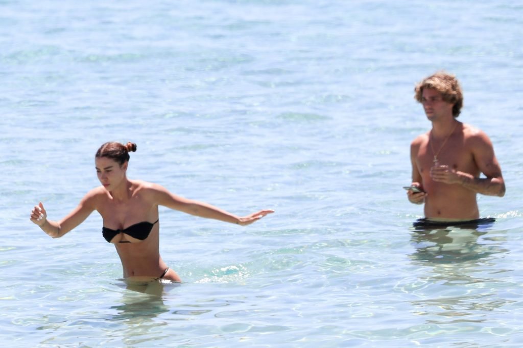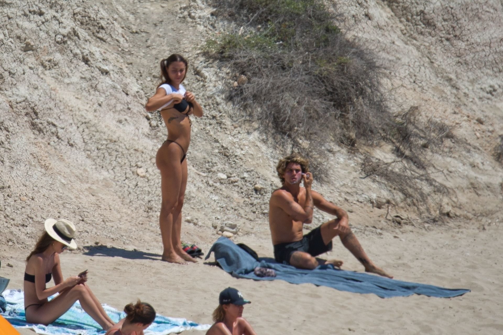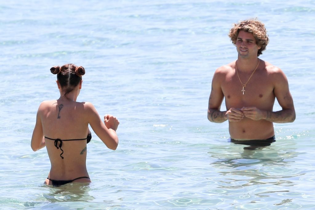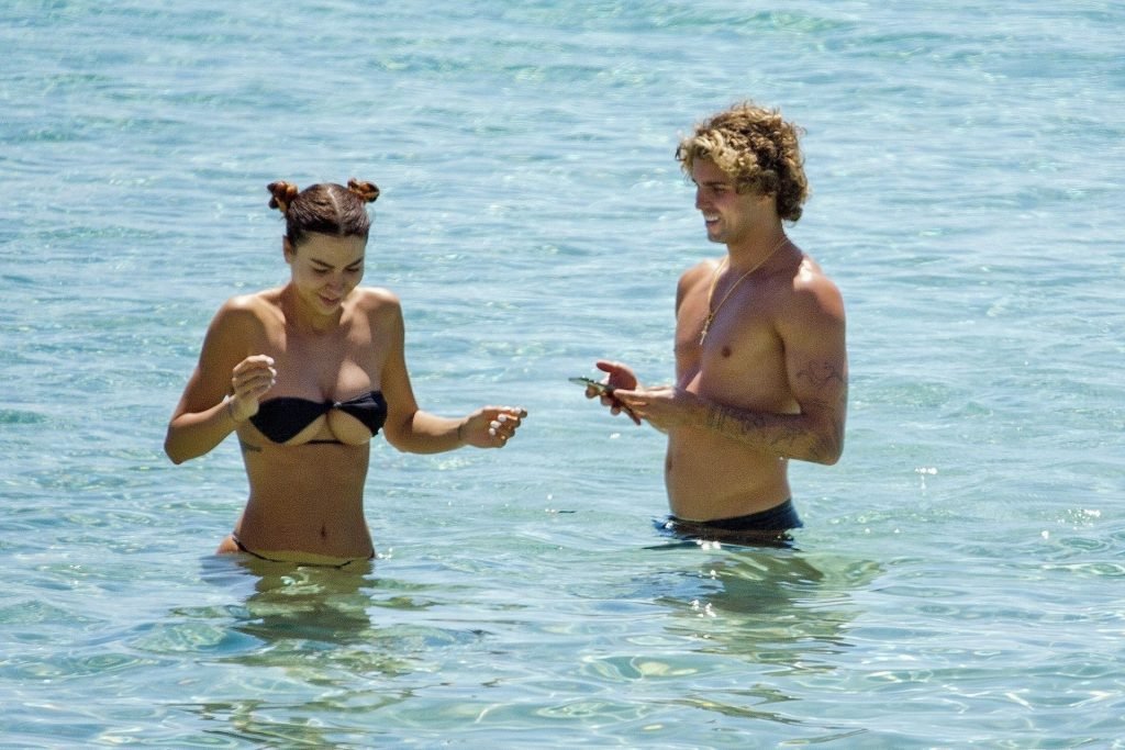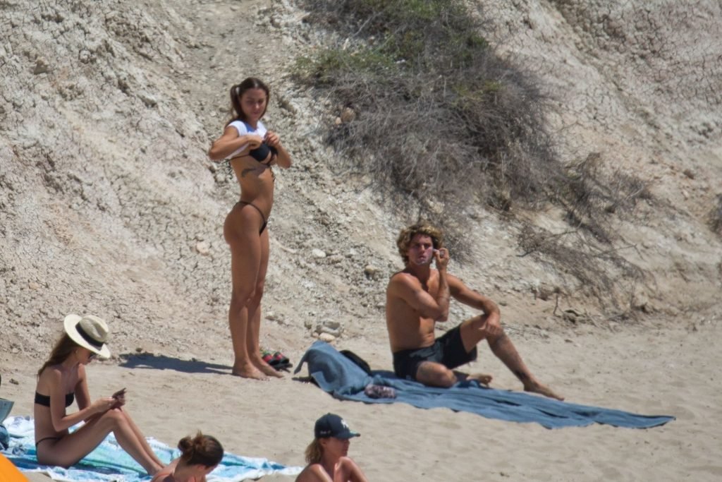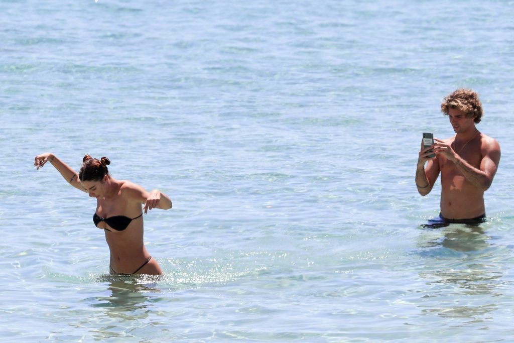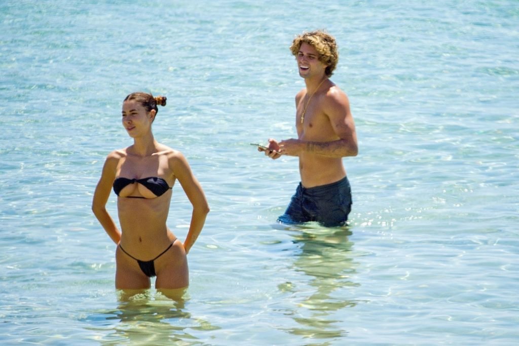 Влюбленные Валентина Фрадеграда и Джей Алваррез наслаждаются днем на пляже в Ибице, 22.05.2019. Джей делает снимки своей прекрасной девушки Валентины, прежде чем расслабиться топлес на пляже.